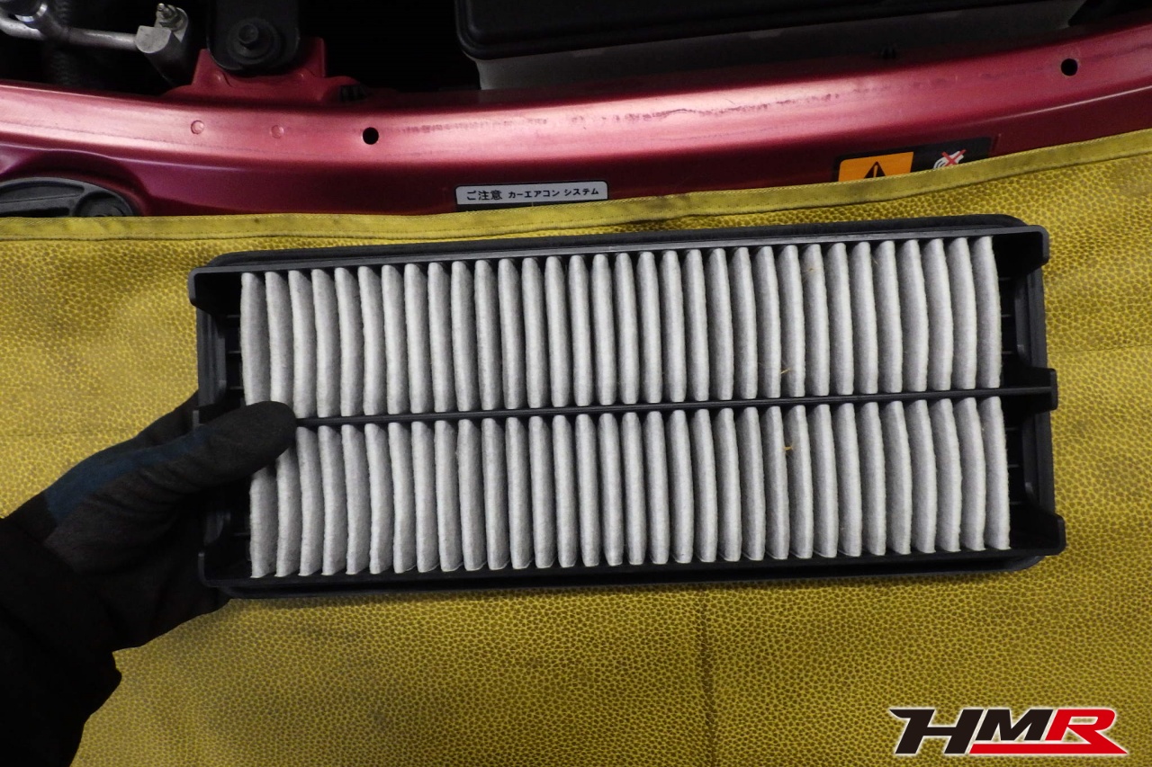 バッテリー、インテークホース、エアクリーナー、補機ベルト、プラグ、ブレーキ・クラッチマスターシリンダー、各部ゴム類の劣化、パッキン類・シール類からのオイル滲み・漏れ、ラジエターの劣化、冷却水漏れ、その他異音などをチェックしました。バッテリーが弱っていましたので交換しました。