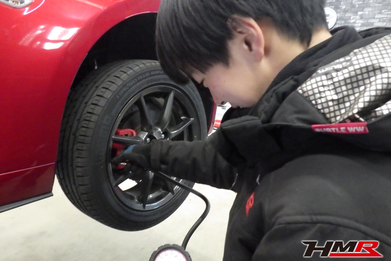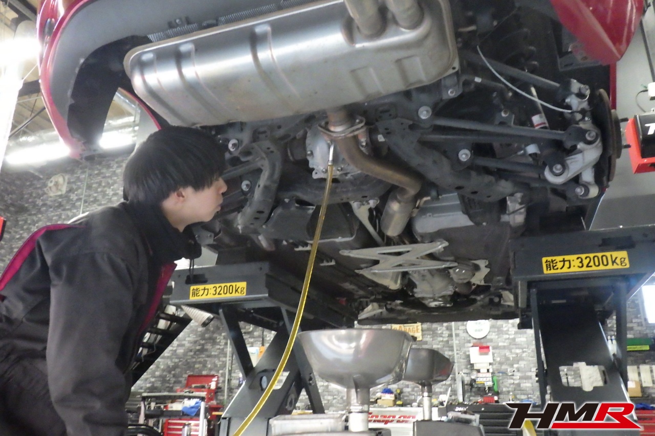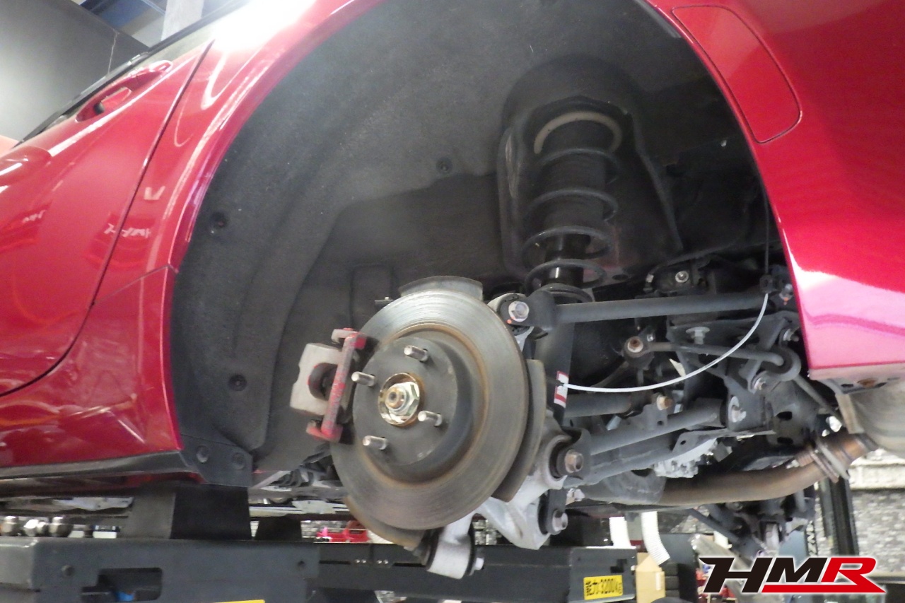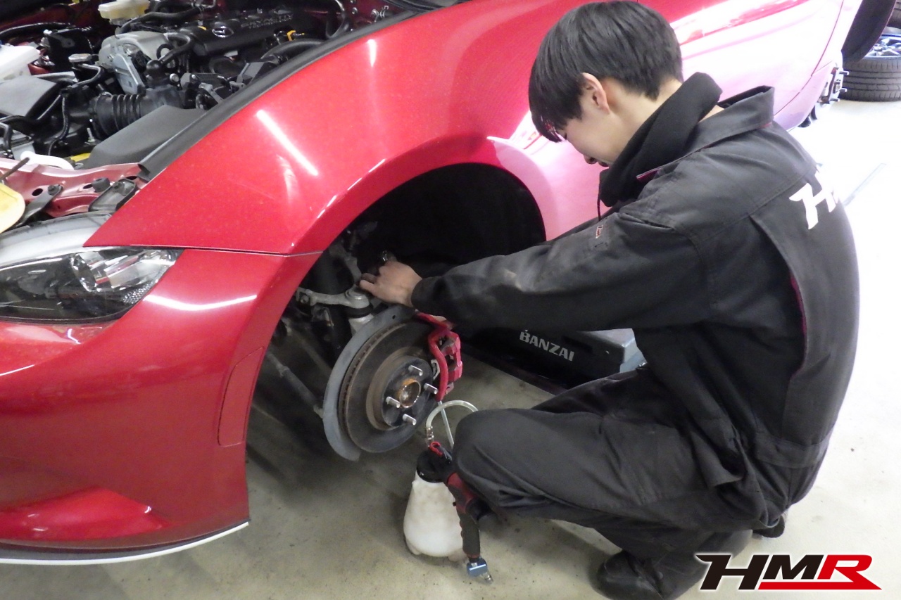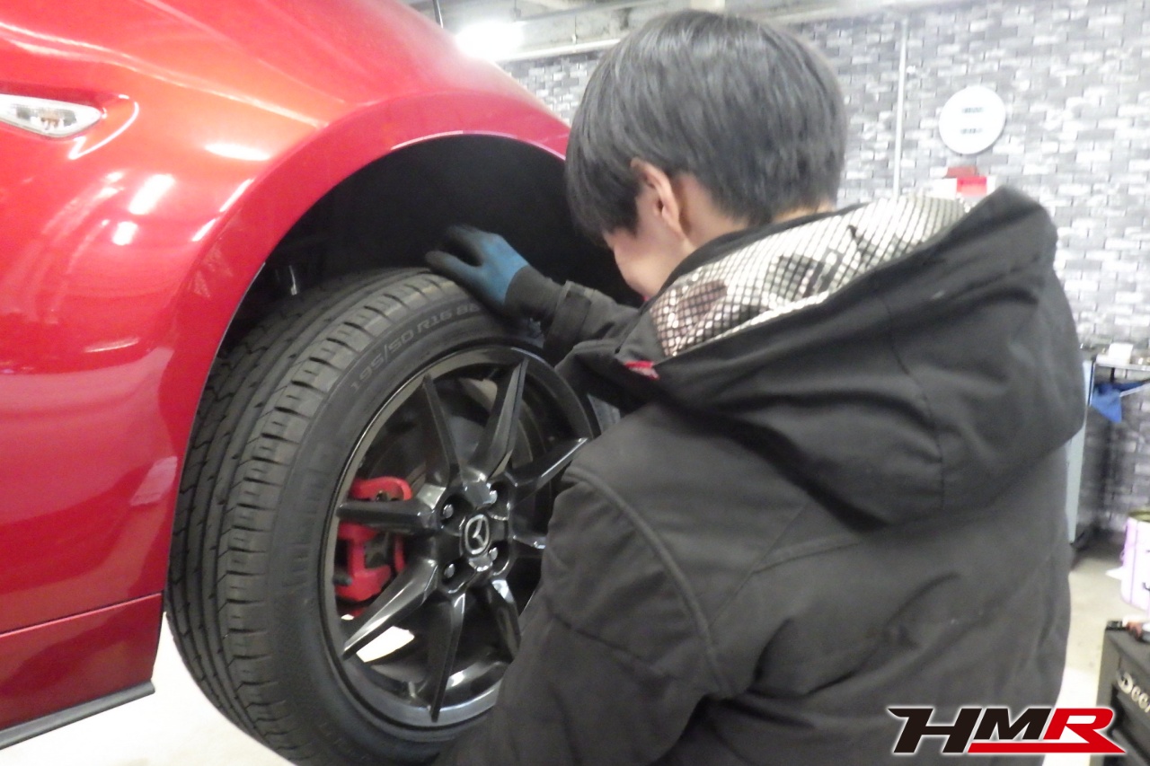 HMR(エイチエムアール)の秋山です。今回は6MT AutoExeリアウィング装備のロードスター(ND5RC)の納車前点検整備を行いました。担当メカニックは手代木です。