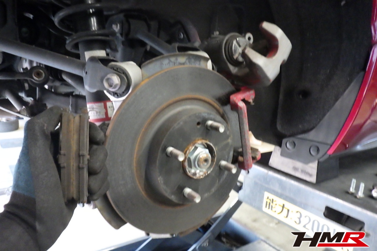 ブレーキキャリパーシール・キャリパーピストン、パッドの残量、ブレーキホースの劣化、ブレーキディスクローターの摩耗をチェックしました。パッドの残量はおおよそフロント5.5mm・リア5.8mmでした。