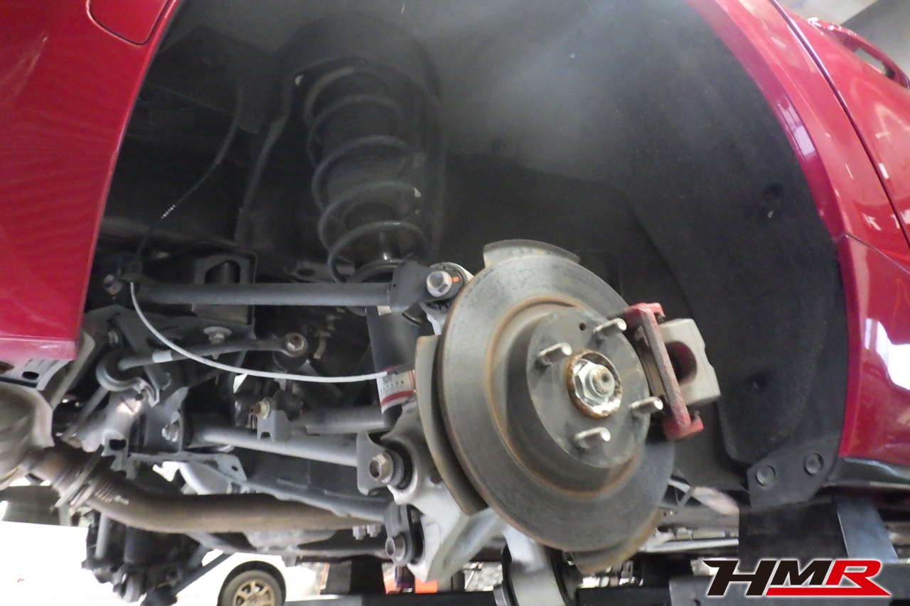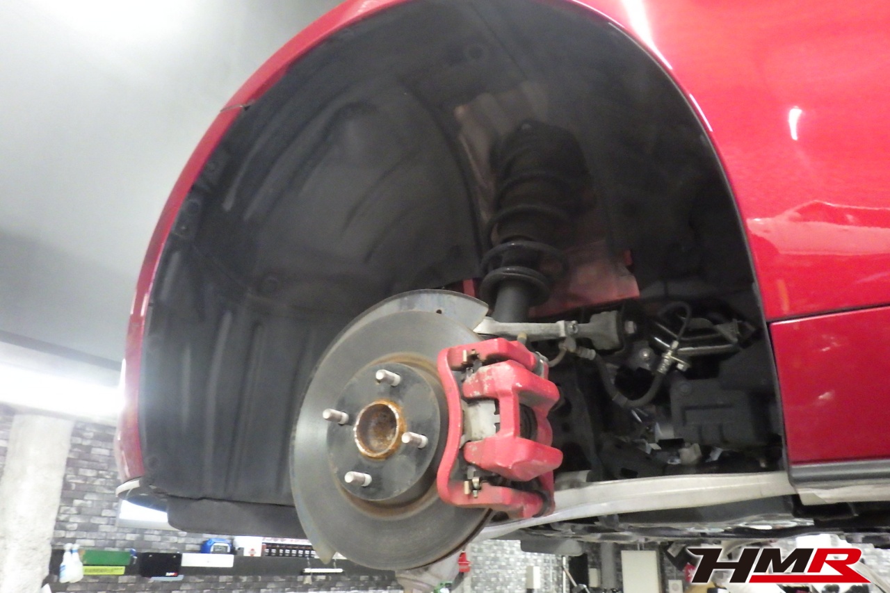 ハブベアリング・ボールジョイント、アーム・リンク類のガタ、ブッシュ・ブーツ類の劣化、エンジン・ミッション・デフからのオイル漏れと各マウント類、タイヤ溝の残量、空気圧の点検しました。特に問題ありませんでした。