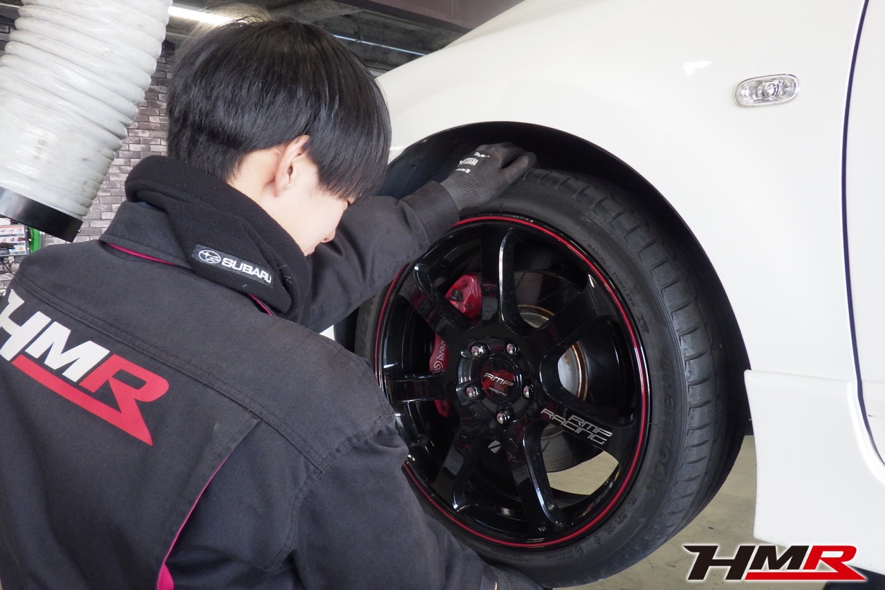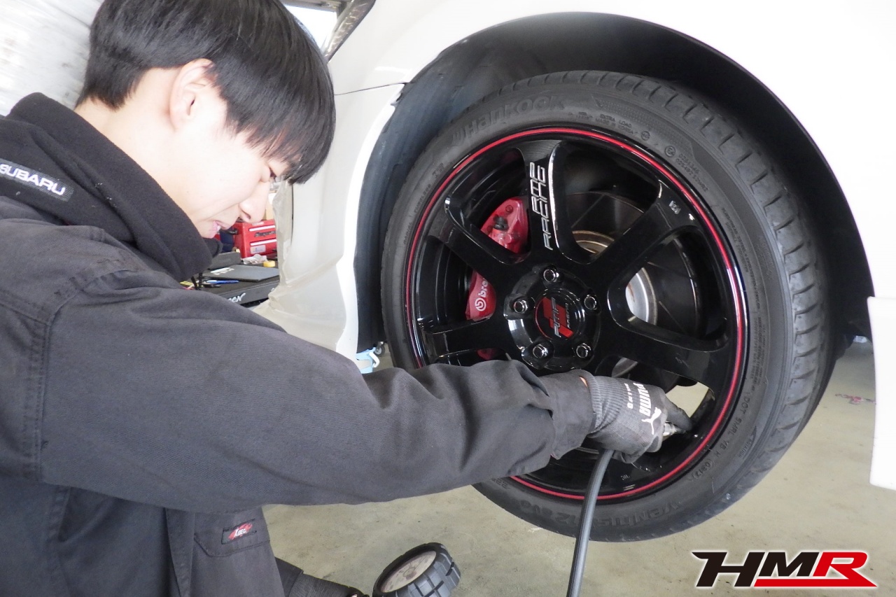 ハブベアリング・ボールジョイント、アーム・リンク類のガタ、ブッシュ・ブーツ類の劣化、エンジン・ミッション・デフからのオイル漏れと各マウント類、タイヤ溝の残量、空気圧の点検しました。特に問題ありませんでした。タイヤの残量はおおよそフロント5.2mm・リア4.4mmでした。