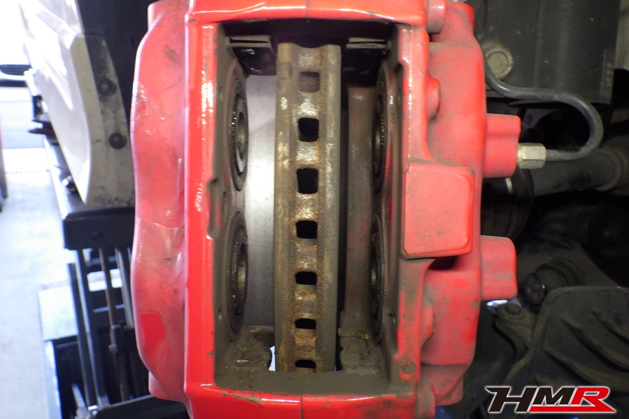 ブレーキキャリパーシール・キャリパーピストン、パッドの残量、ブレーキホースの劣化、ブレーキディスクローターの摩耗をチェックしました。パッドの残量はおおよそフロント8.6mm・リア8.0mmでした。