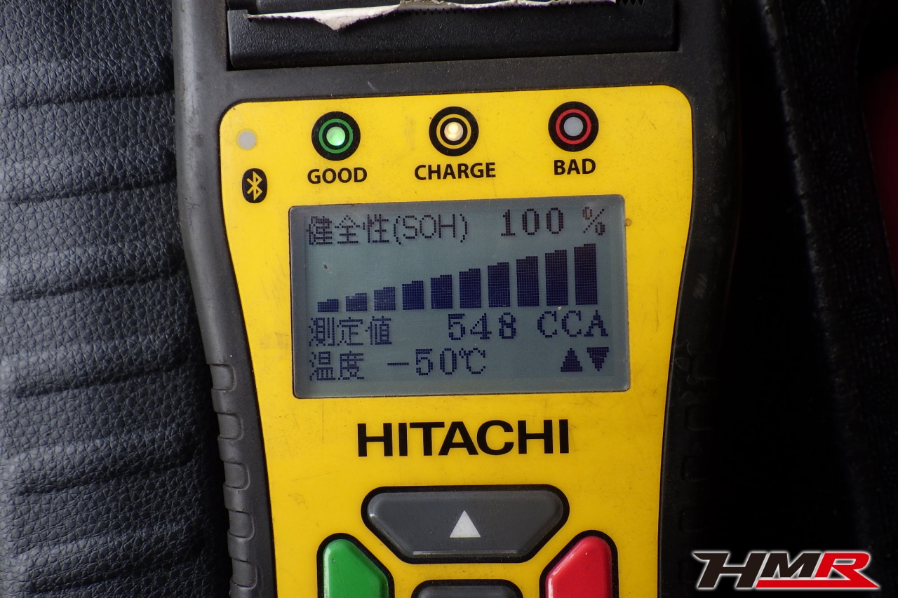 バッテリー、インテークホース、エアクリーナー、補機ベルト、プラグ、ブレーキ・クラッチマスターシリンダー、各部ゴム類の劣化、パッキン類・シール類からのオイル滲み・漏れ、ラジエターの劣化、冷却水漏れ、その他異音などをチェックしました。特に問題ありませんでした。