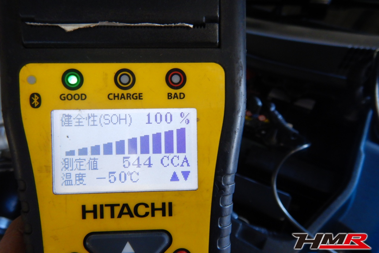 バッテリー、インテークホース、エアクリーナー、補機ベルト、プラグ、ブレーキ・クラッチマスターシリンダー、各部ゴム類の劣化、パッキン類・シール類からのオイル滲み・漏れ、ラジエターの劣化、冷却水漏れ、その他異音などをチェックしました。