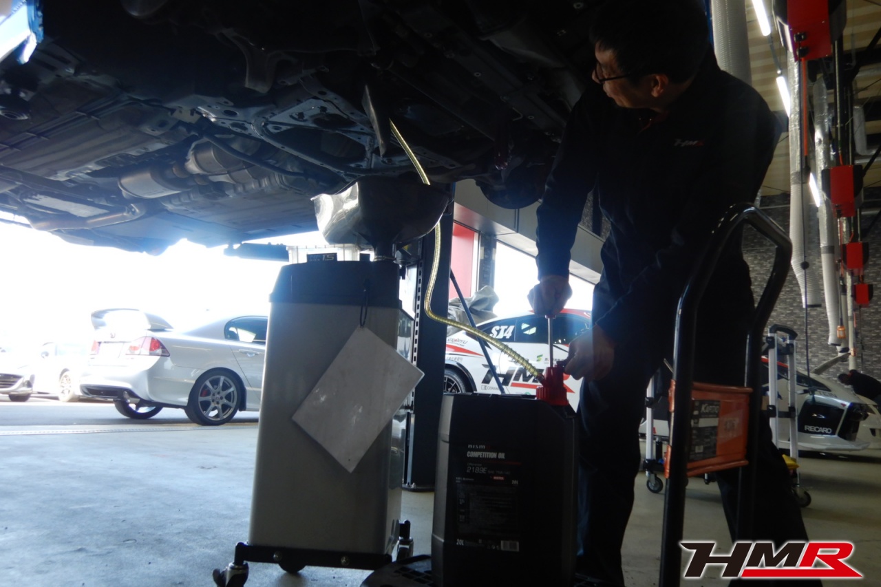 エンジンオイル(ニスモコンペ2193E)、オイルフィルター(ピットワーク)、ブレーキフルード(GTR用)、フロント・リアデフオイル(ニスモコンペ2189E)、冷却水を交換しました。