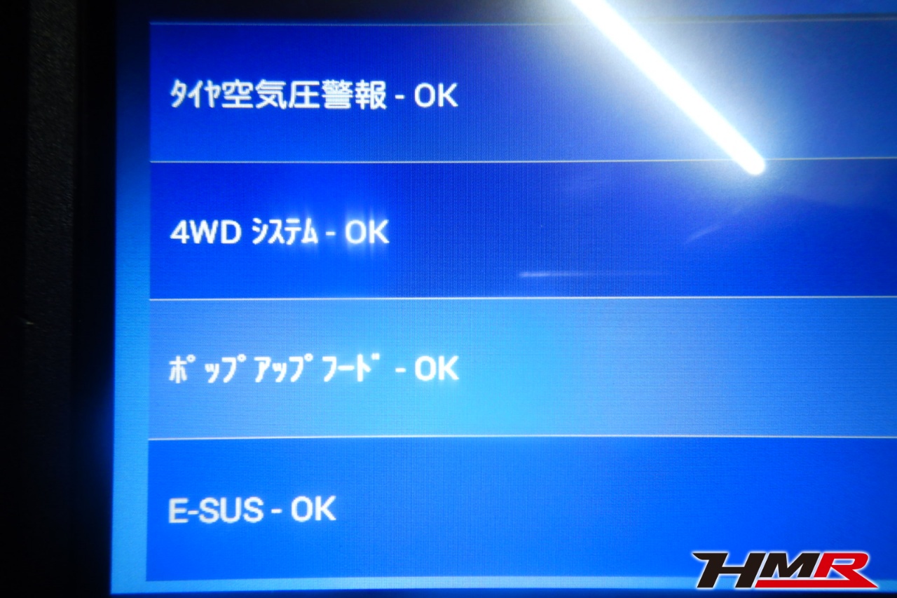 ハブベアリング・ボールジョイント、アーム・リンク類のガタ、ブッシュ・ブーツ類の劣化、エンジン・ミッション・デフからのオイル漏れと各マウント類、タイヤ溝の残量、空気圧の点検しました。特に問題ありませんでした。