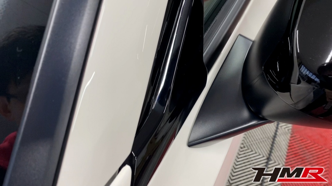 続いては樹脂パーツのコーティングです。FL5の場合は、ドアミラー、モール類、ワイパー下のカウルトップ、フロントバンパー中央のダクト部分などになります。