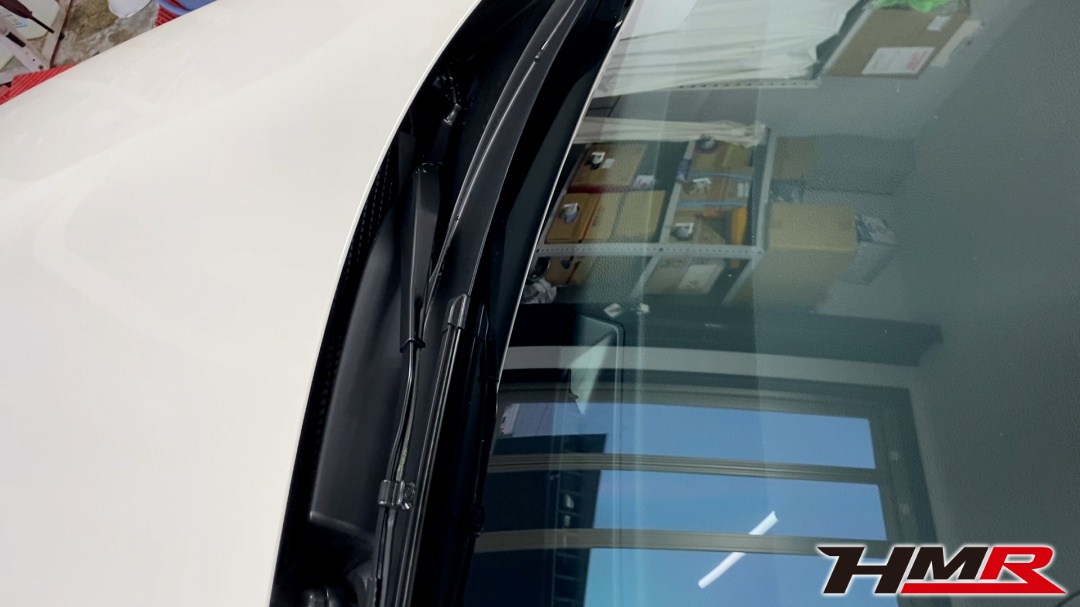 まずはフロントから。今回、フロントガラスにはプロテクションフィルムを貼るため運転席と助手席、ドアミラーへ施工しました。