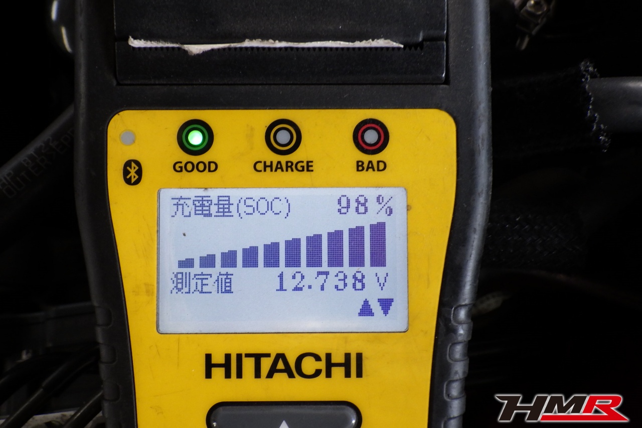 バッテリー、インテークホース、エアクリーナー、補機ベルト、プラグ、ブレーキ・クラッチマスターシリンダー、各部ゴム類の劣化、パッキン類・シール類からのオイル滲み・漏れ、ラジエターの劣化、冷却水漏れ、その他異音などをチェックしました。特に問題ありませんでした。