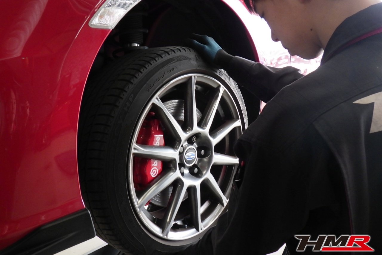 HMR(エイチエムアール)の秋山です。今回は1オーナー 6MT STIフルエアロ装備のスバル BRZ2.0GT(ZC6)の納車前点検整備を行いました。担当メカニックは手代木です。