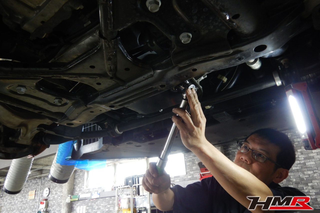 ハブベアリング・ボールジョイント、アーム・リンク類のガタ、ブッシュ・ブーツ類の劣化、エンジン・ミッション・デフからのオイル漏れと各マウント類、タイヤ溝の残量、空気圧の点検しました。特に問題ありませんでした。