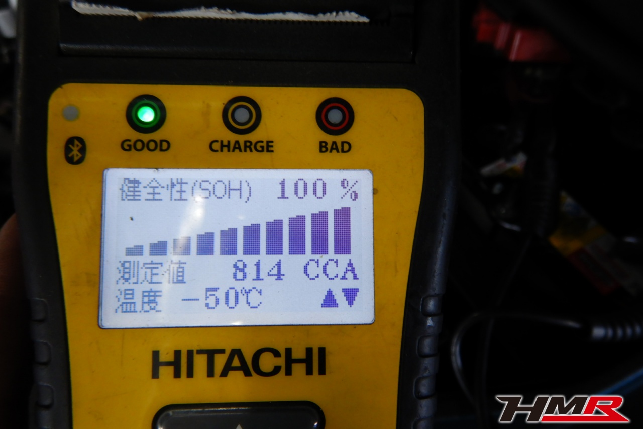 バッテリー、インテークホース、エアクリーナー、補機ベルト、プラグ、ブレーキ・クラッチマスターシリンダー、各部ゴム類の劣化、パッキン類・シール類からのオイル滲み・漏れ、ラジエターの劣化、冷却水漏れ、その他異音などをチェックしました。