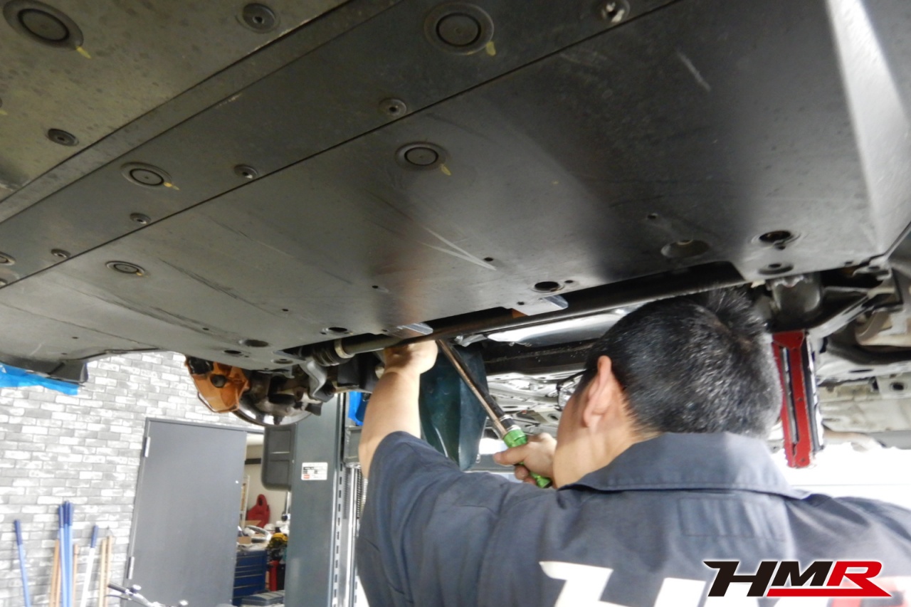 ハブベアリング・ボールジョイント、アーム・リンク類のガタ、ブッシュ・ブーツ類の劣化、エンジン・ミッション・デフからのオイル漏れと各マウント類、タイヤ溝の残量、空気圧の点検しました。特に問題ありませんでした。