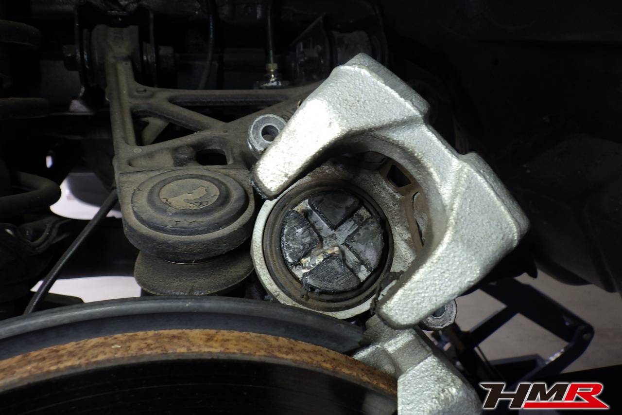 ブレーキキャリパーシール・キャリパーピストン、パッドの残量、ブレーキホースの劣化、ブレーキディスクローターの摩耗をチェックしました。特に問題ありませんでした。パッド残量はフロント5.8mm・リア5.0mmでした。