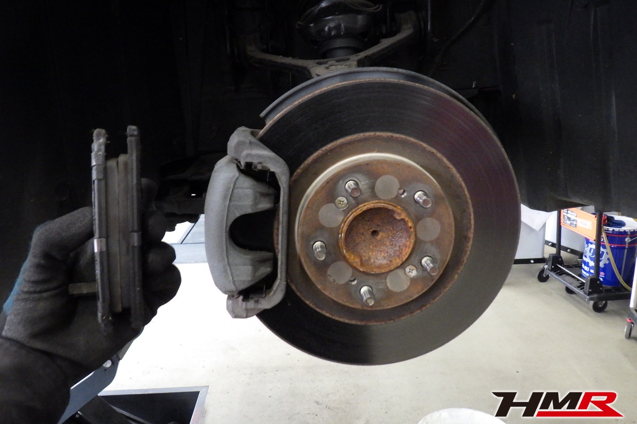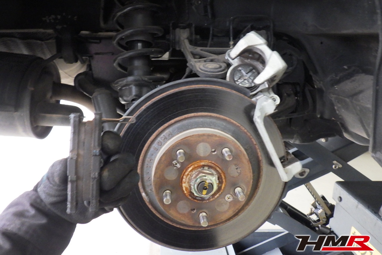 ブレーキキャリパーシール・キャリパーピストン、パッドの残量、ブレーキホースの劣化、ブレーキディスクローターの摩耗をチェックしました。特に問題ありませんでした。パッド残量はフロント5.8mm・リア5.0mmでした。