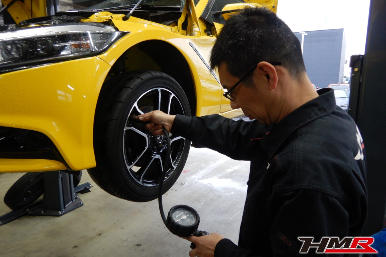 ハブベアリング・ボールジョイント、アーム・リンク類のガタ、ブッシュ・ブーツ類の劣化、エンジン・ミッション・デフからのオイル漏れと各マウント類、タイヤ溝の残量、空気圧の点検しました。