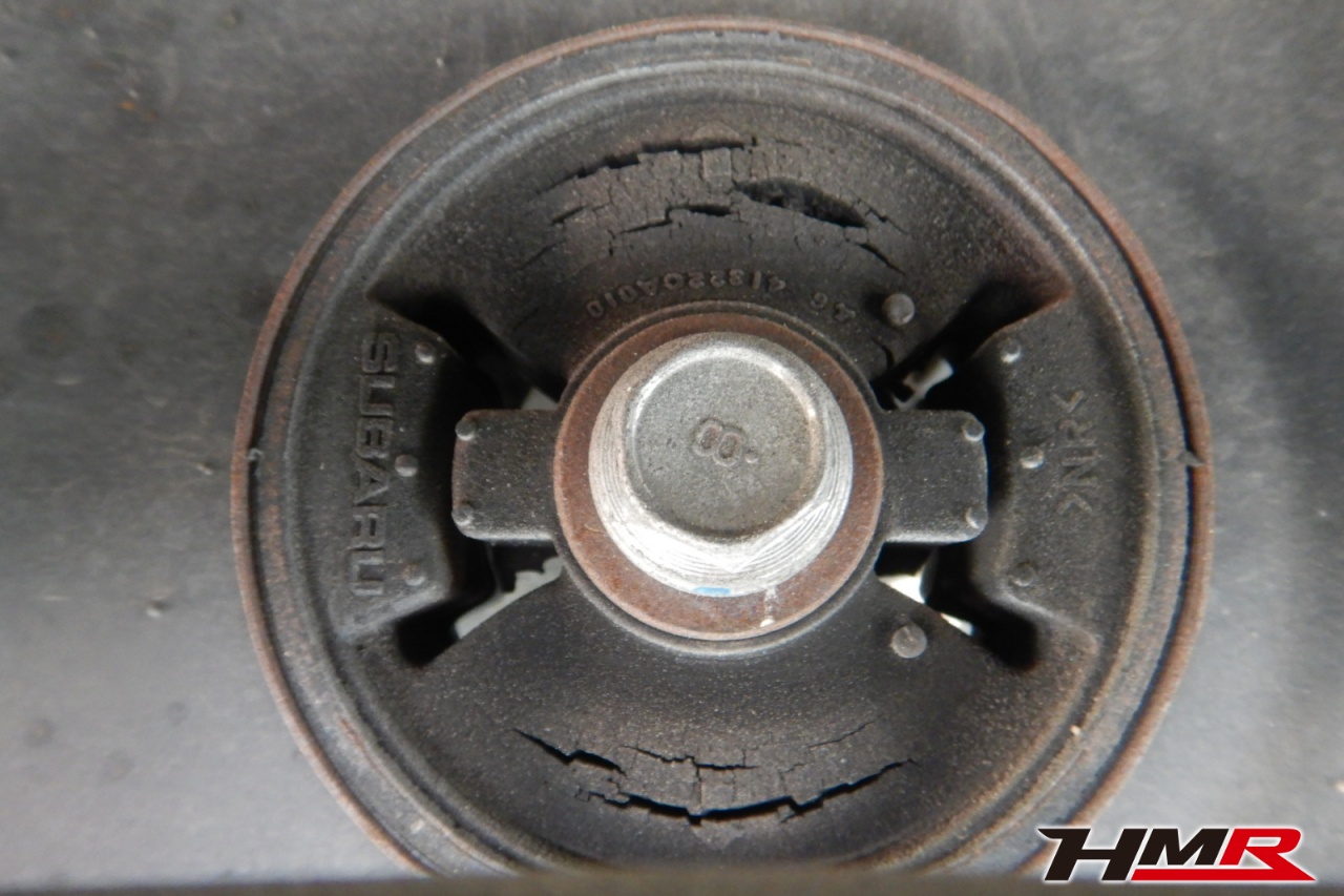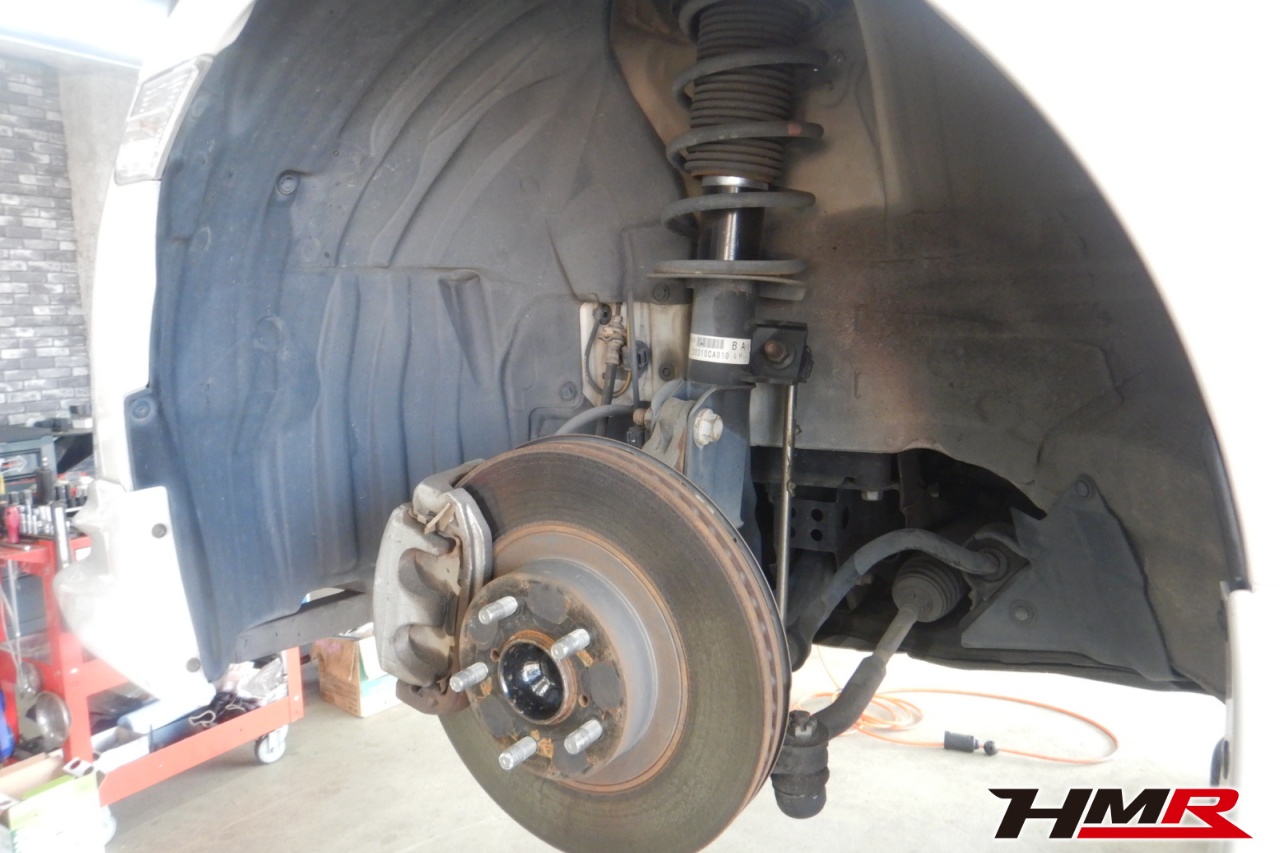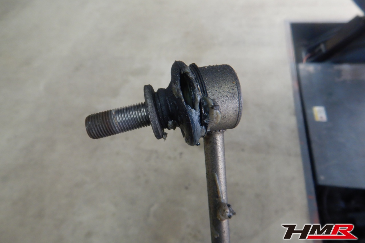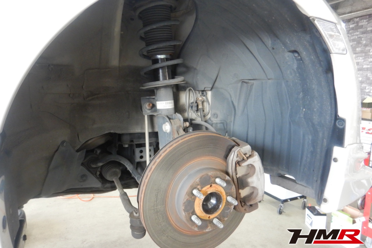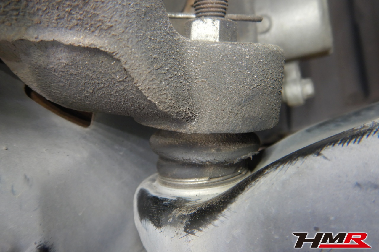 ハブベアリング・ボールジョイント、アーム・リンク類のガタ、ブッシュ・ブーツ類の劣化、エンジン・ミッション・デフからのオイル漏れと各マウント類、タイヤ溝の残量、空気圧の点検を行いました。左側フロントスタビリンクブーツと右側デフマウントブッシュが切れていましたので交換しました。