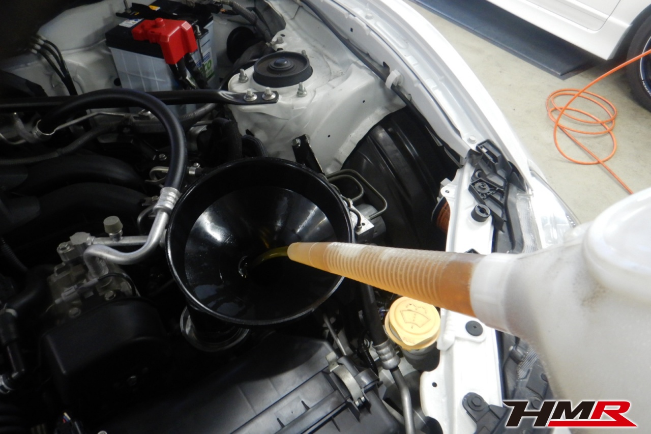 エンジンオイル、オイルフィルター、オイルフィルターセンターボルト、ミッションオイル、リアデフオイル、クーラント、ブレーキフルード、を交換しました。エンジンオイルはWAKO’SプロステージS 10W-40、ミッションオイルはWAKO’Sギアオイル MT-75 リアデフオイルはWAKO’S ギアオイルMG-90に交換しています。
