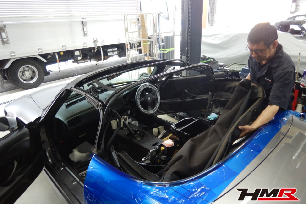 HMR(エイチエムアール)の秋山です。今回はアミューズECU HKS車高調 マフラー装着のS2000(AP1)の納車前点検整備を行いました。担当メカニックは手代木です。