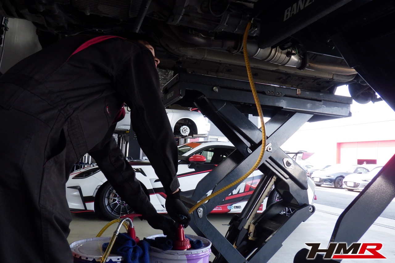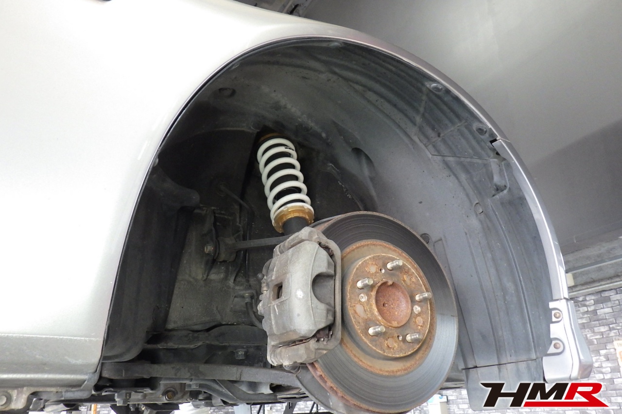 ハブベアリング・ボールジョイント、アーム・リンク類のガタ、ブッシュ・ブーツ類の劣化、エンジン・ミッション・デフからのオイル漏れと各マウント類、タイヤ溝の残量、空気圧の点検しました。特に問題ありませんでした。