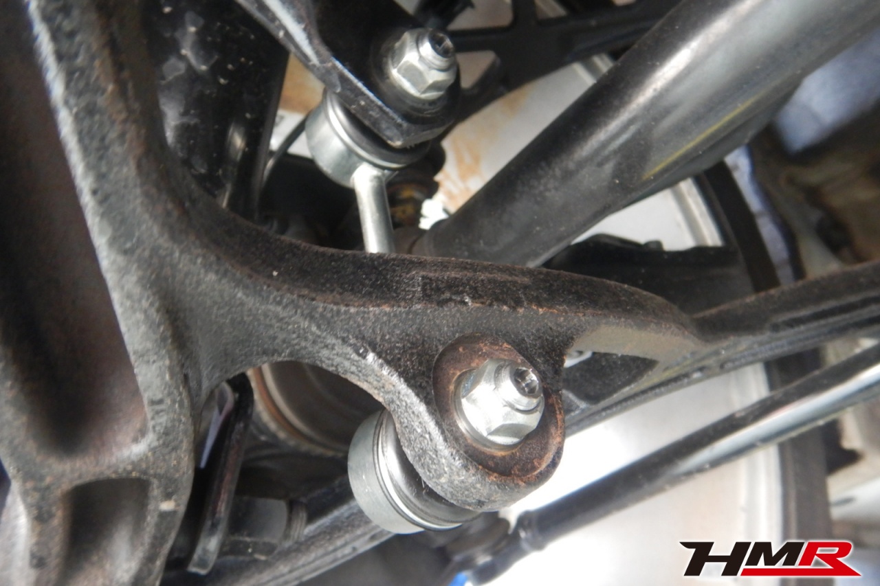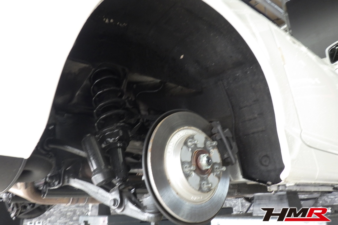 ハブベアリング・ボールジョイント、アーム・リンク類のガタ、ブッシュ・ブーツ類の劣化、エンジン・ミッション・デフからのオイル漏れと各マウント類、タイヤ溝の残量、空気圧の点検を行いました。リア左右スタビリンクブーツが切れていましたので交換しました。