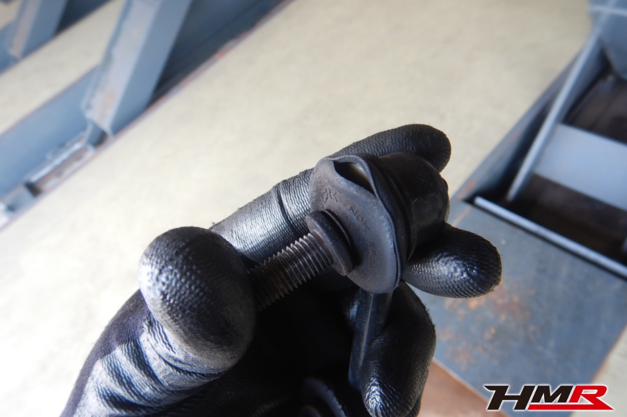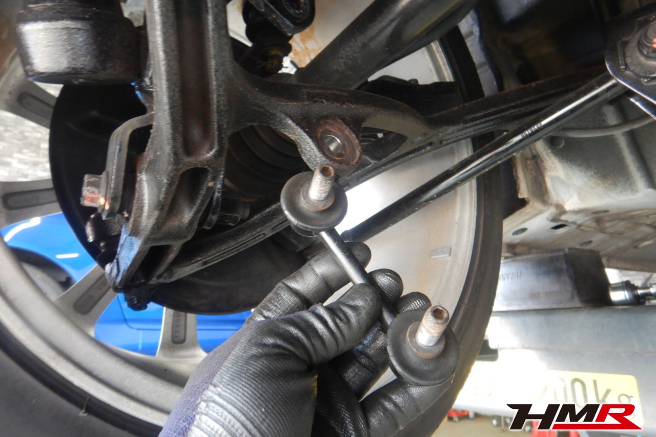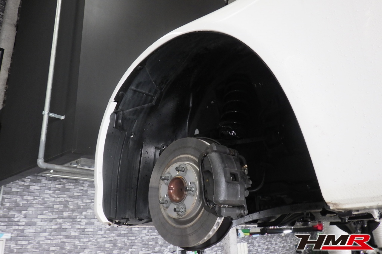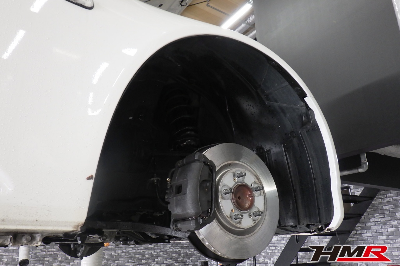 ハブベアリング・ボールジョイント、アーム・リンク類のガタ、ブッシュ・ブーツ類の劣化、エンジン・ミッション・デフからのオイル漏れと各マウント類、タイヤ溝の残量、空気圧の点検を行いました。リア左右スタビリンクブーツが切れていましたので交換しました。