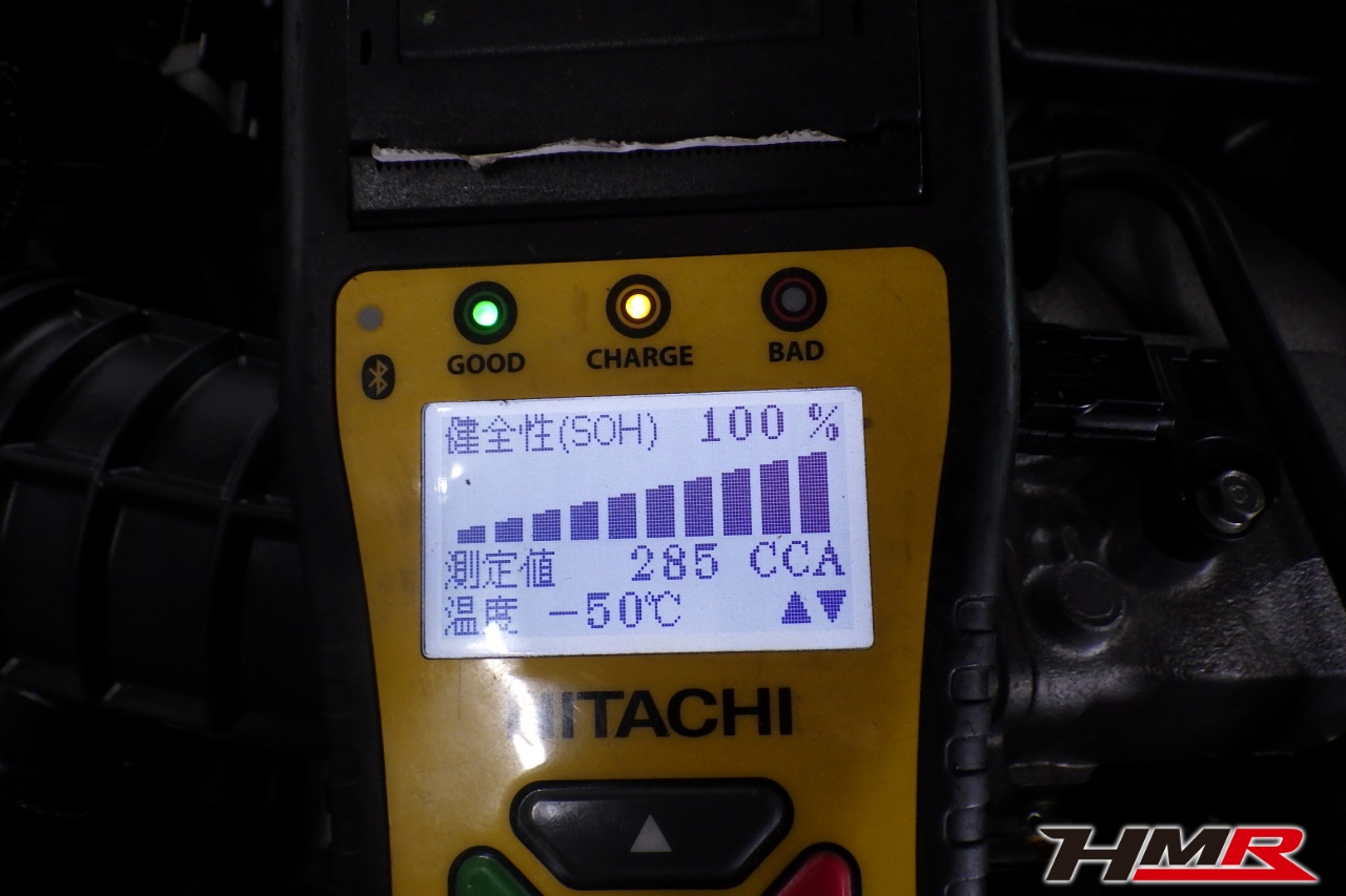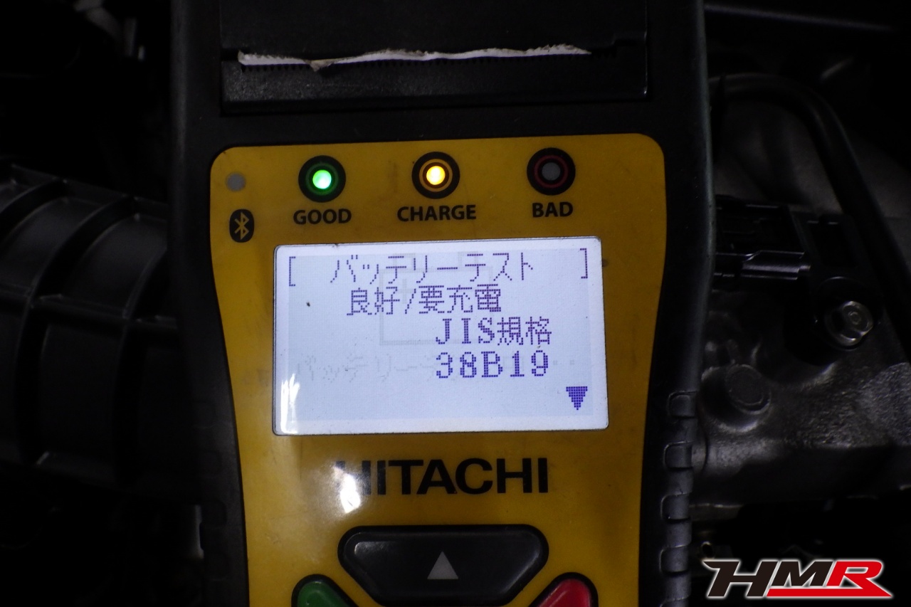 バッテリー、インテークホース、エアクリーナー、補機ベルト、プラグ、ブレーキ・クラッチマスターシリンダー、各部ゴム類の劣化、パッキン類・シール類からのオイル滲み・漏れ、ラジエターの劣化、冷却水漏れ、その他異音などをチェックしました。バッテリーが弱っていましたので交換しました。
