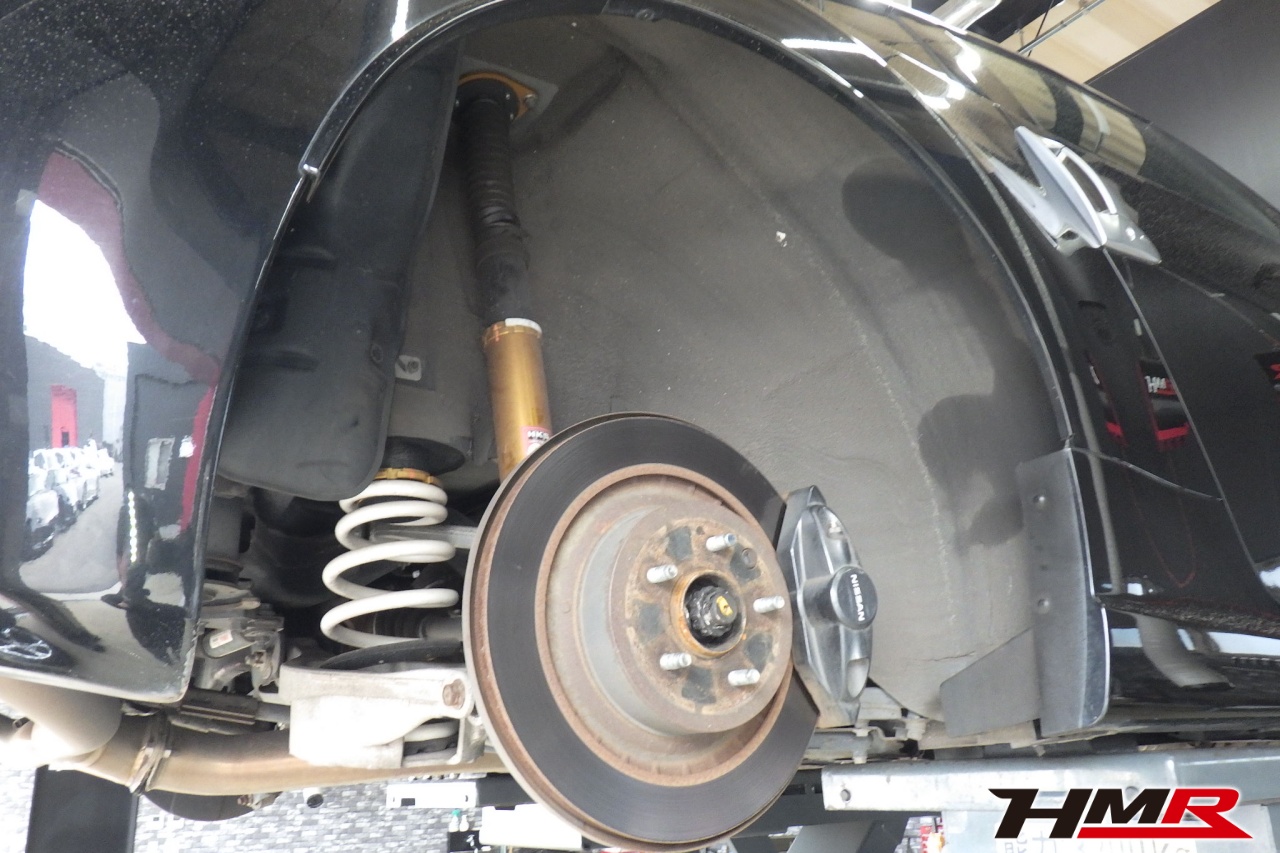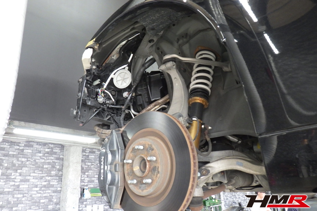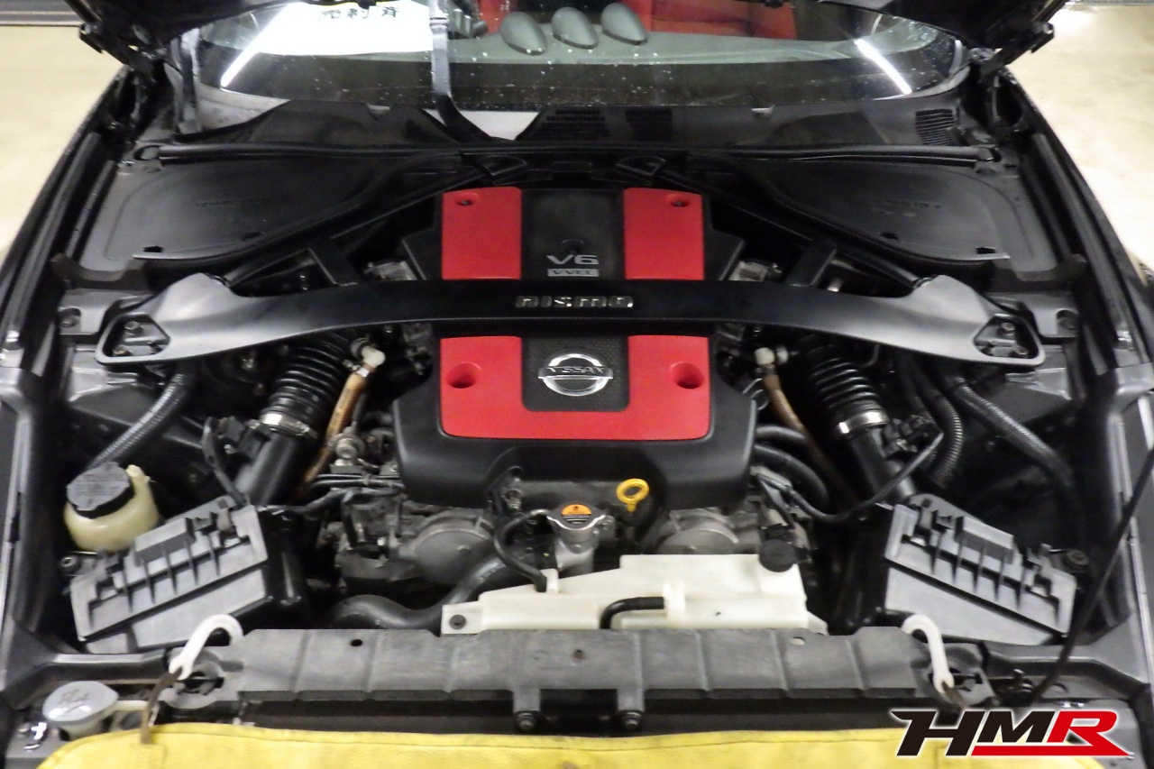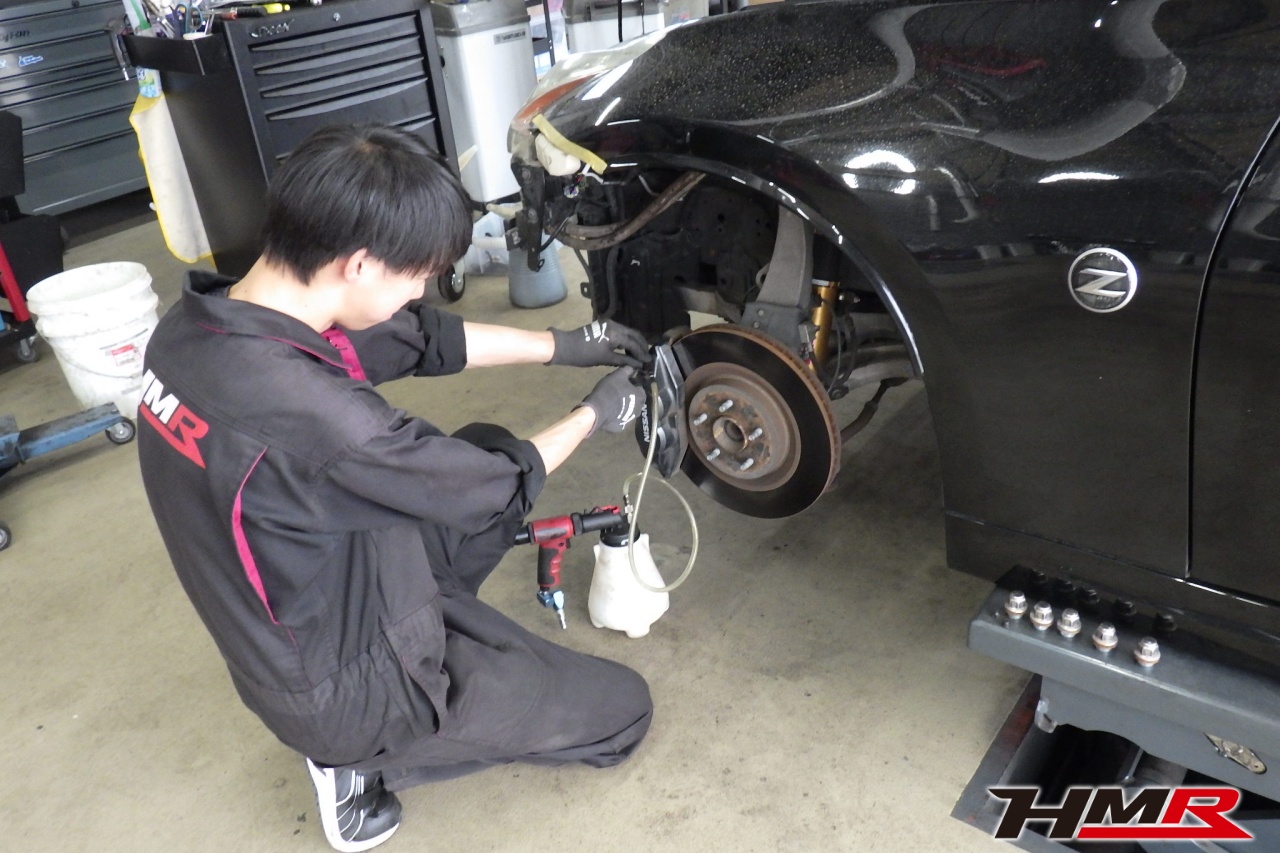 HMR(エイチエムアール)の秋山です。今回はアミューズフロント・リアバンパー装備のフェアレディZ(Z34)の納車前点検整備を行いました。担当メカニックは手代木です。