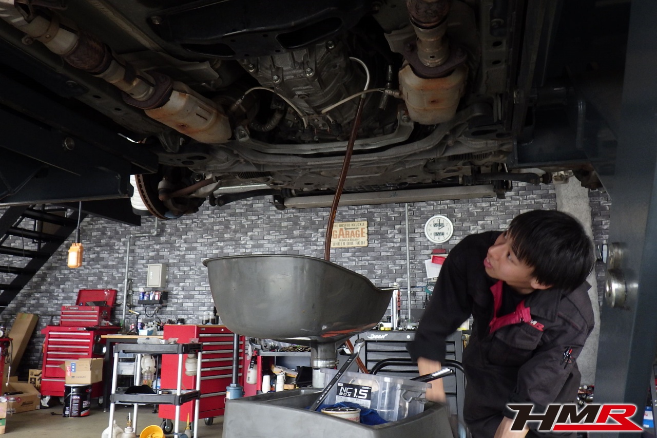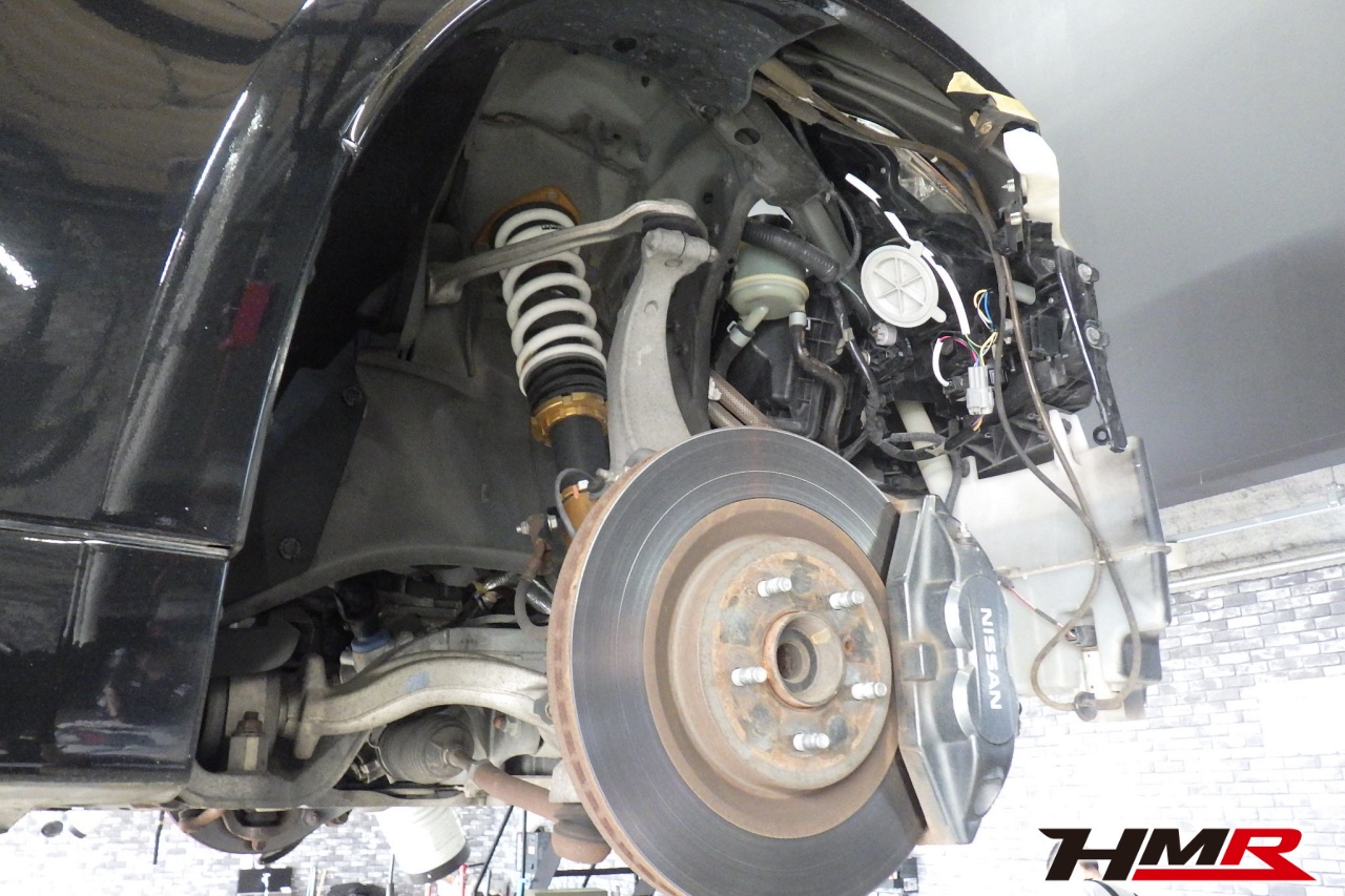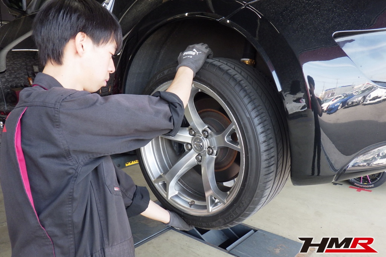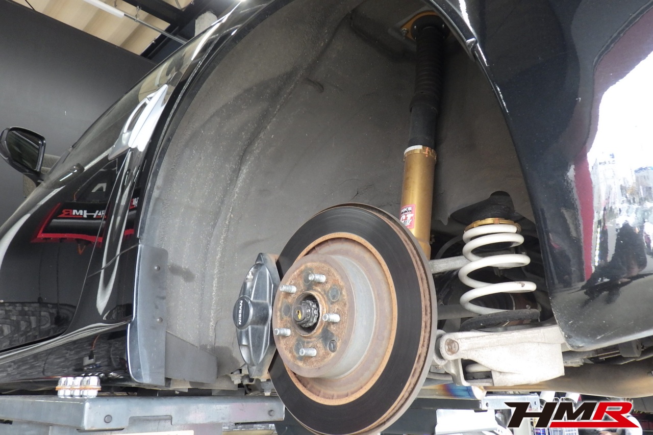 HMR(エイチエムアール)の秋山です。今回はアミューズフロント・リアバンパー装備のフェアレディZ(Z34)の納車前点検整備を行いました。担当メカニックは手代木です。