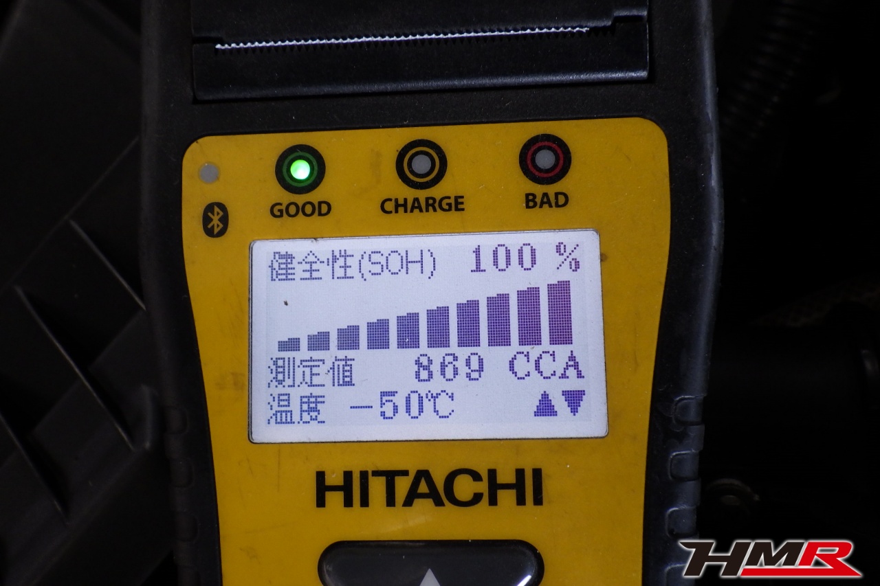 バッテリー、インテークホース、エアクリーナー、補機ベルト、プラグ、ブレーキ・クラッチマスターシリンダー、各部ゴム類の劣化、パッキン類・シール類からのオイル滲み・漏れ、ラジエターの劣化、冷却水漏れ、その他異音などをチェックしました。