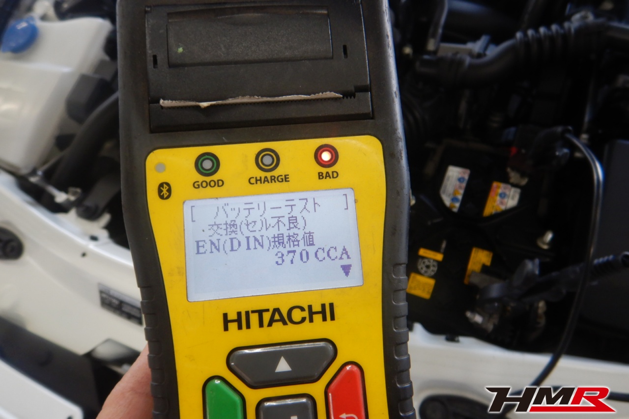 バッテリー、インテークホース、エアクリーナー、補機ベルト、プラグ、ブレーキ・クラッチマスターシリンダー、各部ゴム類の劣化、パッキン類・シール類からのオイル滲み・漏れ、ラジエターの劣化、冷却水漏れ、その他異音などをチェックしました。バッテリーが弱っていましたので交換しました。