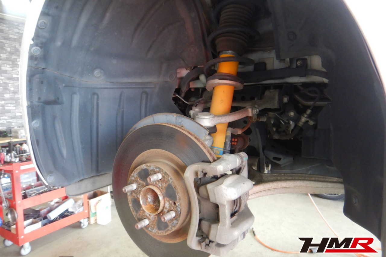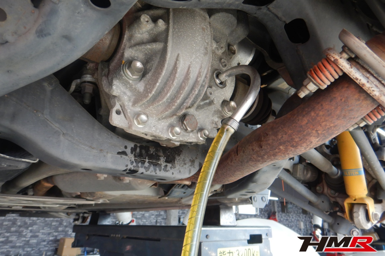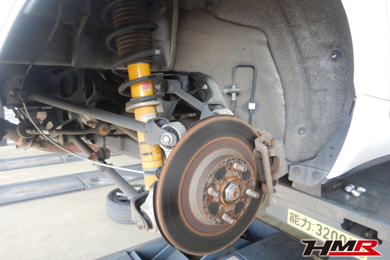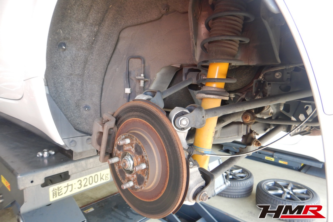 ハブベアリング・ボールジョイント、アーム・リンク類のガタ、ブッシュ・ブーツ類の劣化、エンジン・ミッション・デフからのオイル漏れと各マウント類、タイヤ溝の残量、空気圧の点検しました。
