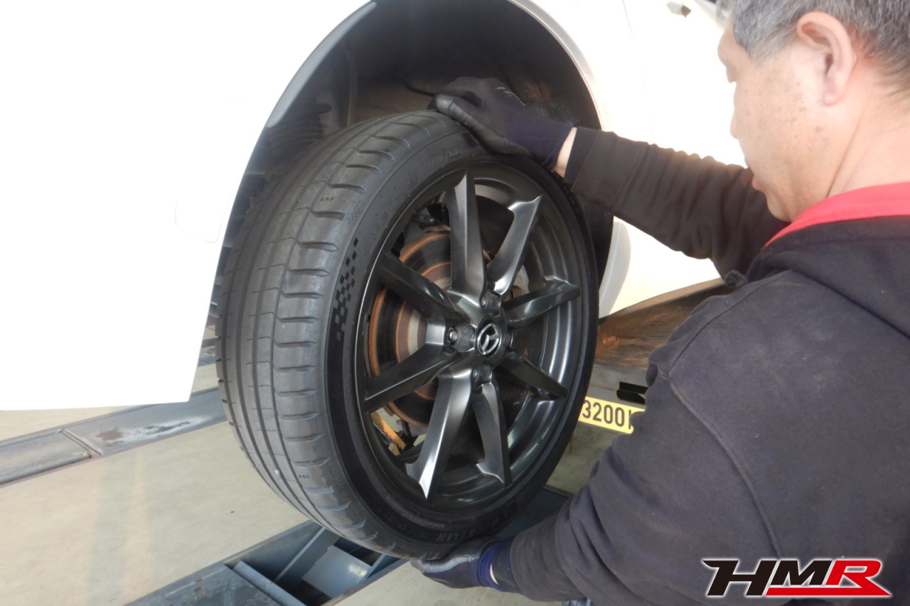 HMR(エイチエムアール)の秋山です。今回は6MT マツダコネクト バックカメラ装備のロードスターRF(NDERC)の納車前点検整備を行いました。担当メカニックは手代木です。