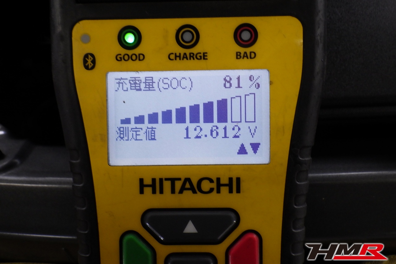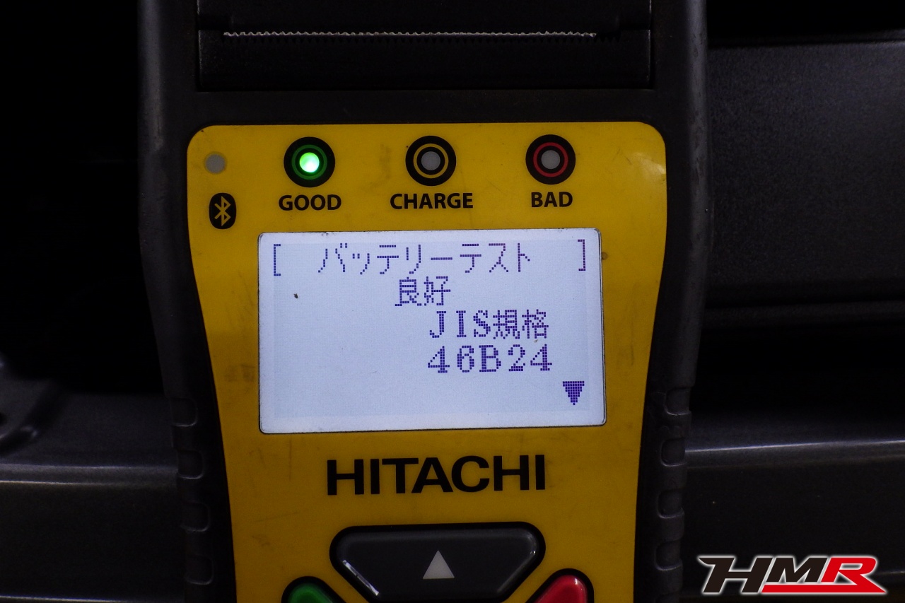 バッテリー、インテークホース、エアクリーナー、補機ベルト、プラグ、ブレーキ・クラッチマスターシリンダー、各部ゴム類の劣化、パッキン類・シール類からのオイル滲み・漏れ、ラジエターの劣化、冷却水漏れ、その他異音などをチェックしました。バッテリーが弱っていましたので交換しました。