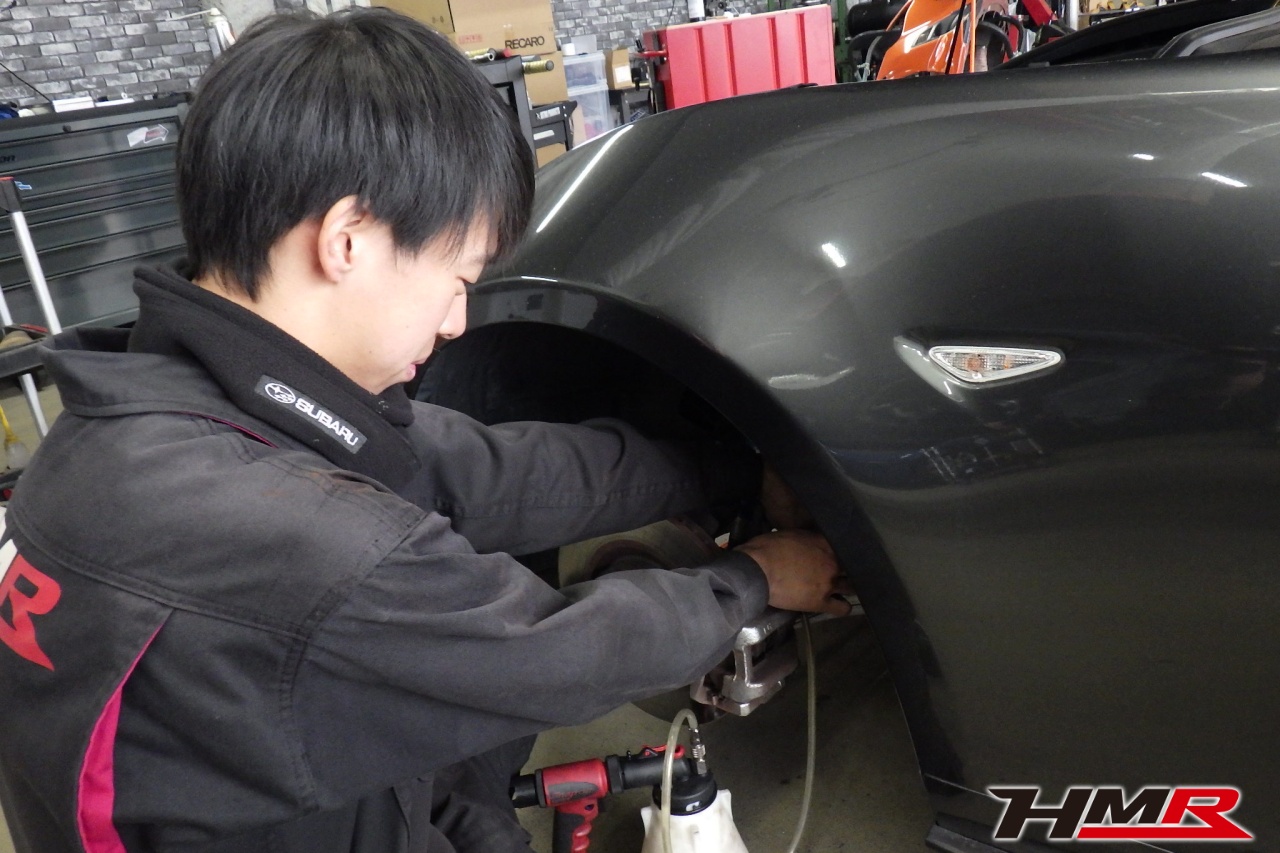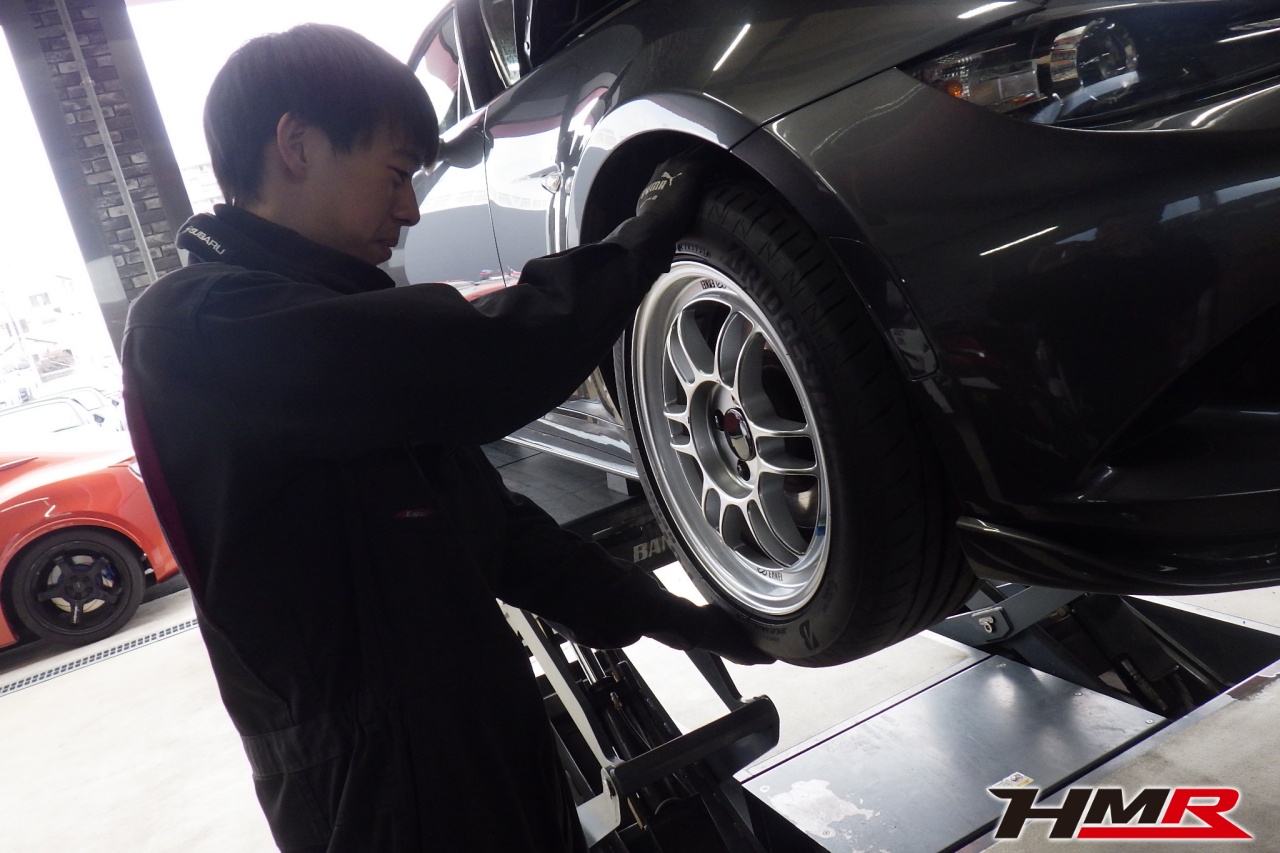 HMR(エイチエムアール)の秋山です。今回はエナペタル車高調 4点ロールケージ装備のロードスター(ND5RC)の納車前点検整備を行いました。担当メカニックは手代木です。