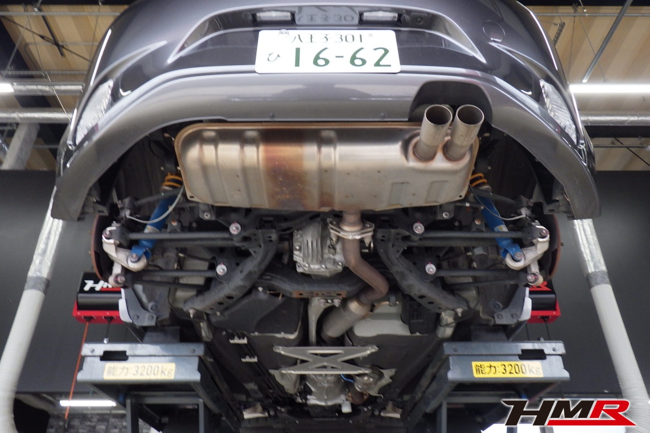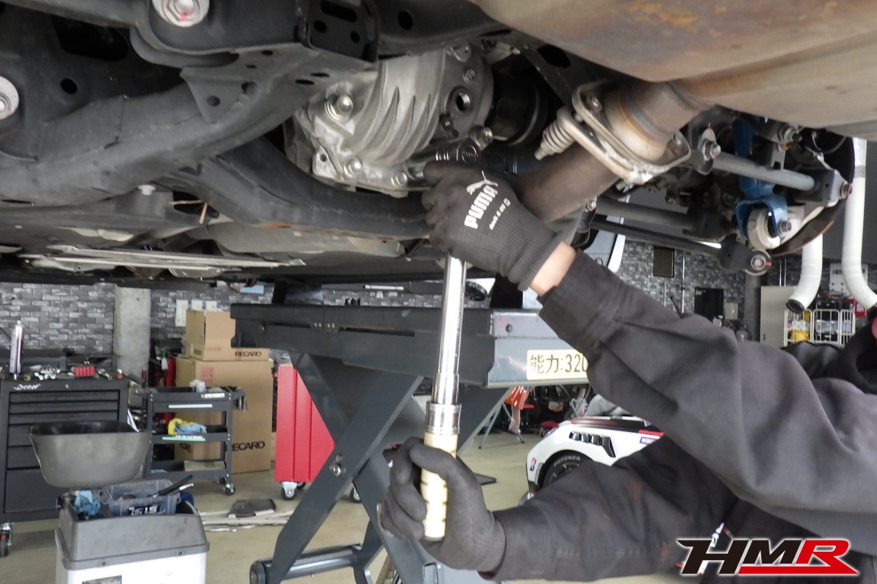 ハブベアリング・ボールジョイント、アーム・リンク類のガタ、ブッシュ・ブーツ類の劣化、エンジン・ミッション・デフからのオイル漏れと各マウント類、タイヤ溝の残量、空気圧の点検しました。