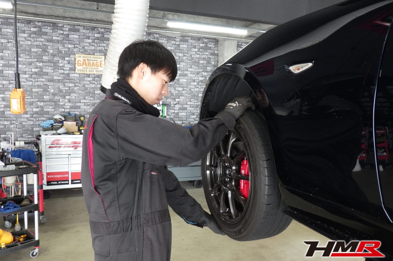 ハブベアリング・ボールジョイント、アーム・リンク類のガタ、ブッシュ・ブーツ類の劣化、エンジン・ミッション・デフからのオイル漏れと各マウント類、タイヤ溝の残量、空気圧の点検しました。タイヤは2021年製で残り溝はフロント5.6mm・リア5.7mmでした。