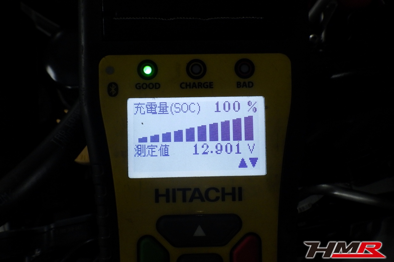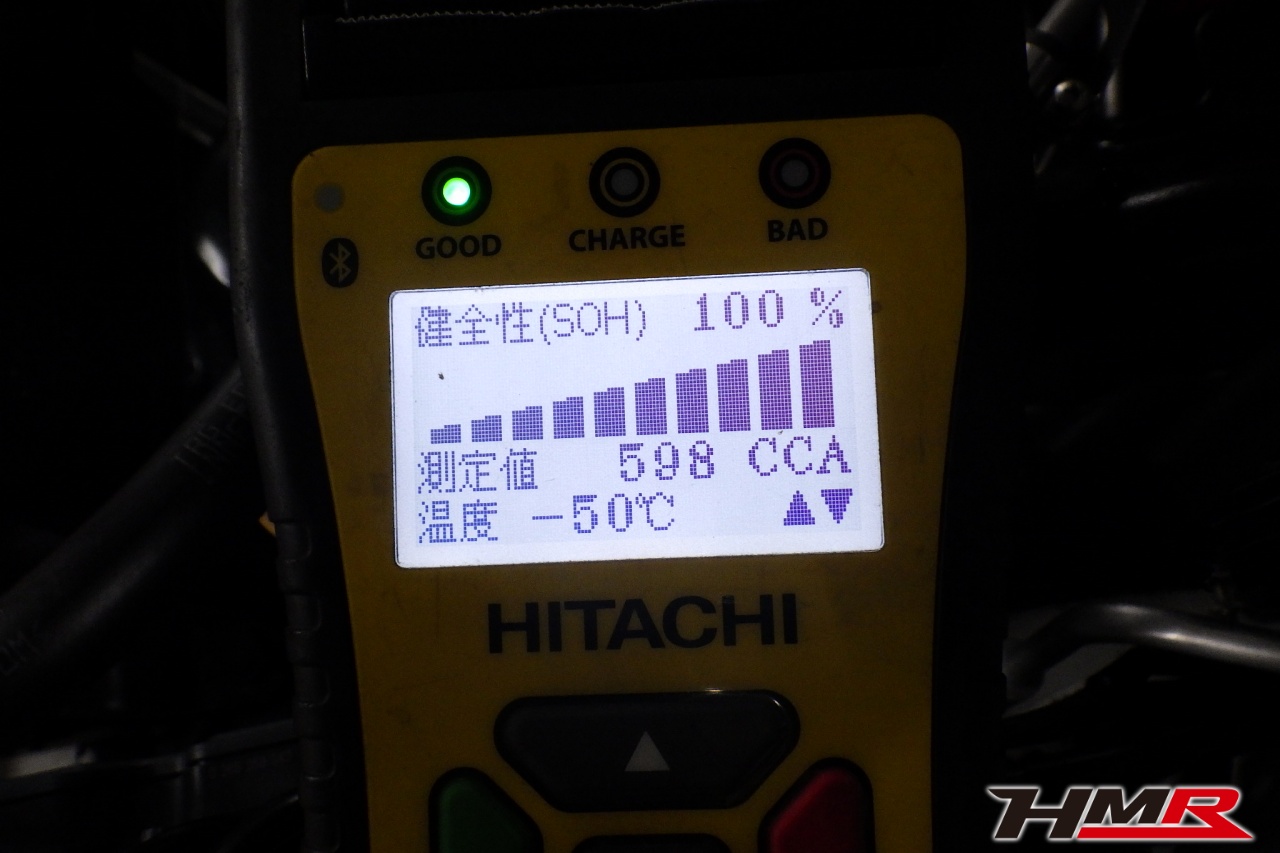 バッテリー、インテークホース、エアクリーナー、補機ベルト、プラグ、ブレーキ・クラッチマスターシリンダー、各部ゴム類の劣化、パッキン類・シール類からのオイル滲み・漏れ、ラジエターの劣化、冷却水漏れ、その他異音などをチェックしました。特に問題ありませんでした。