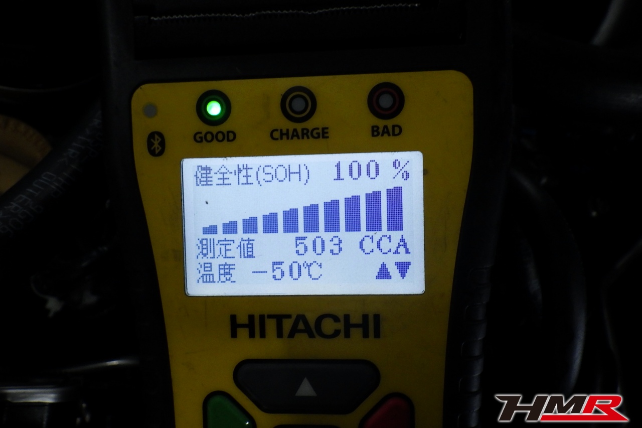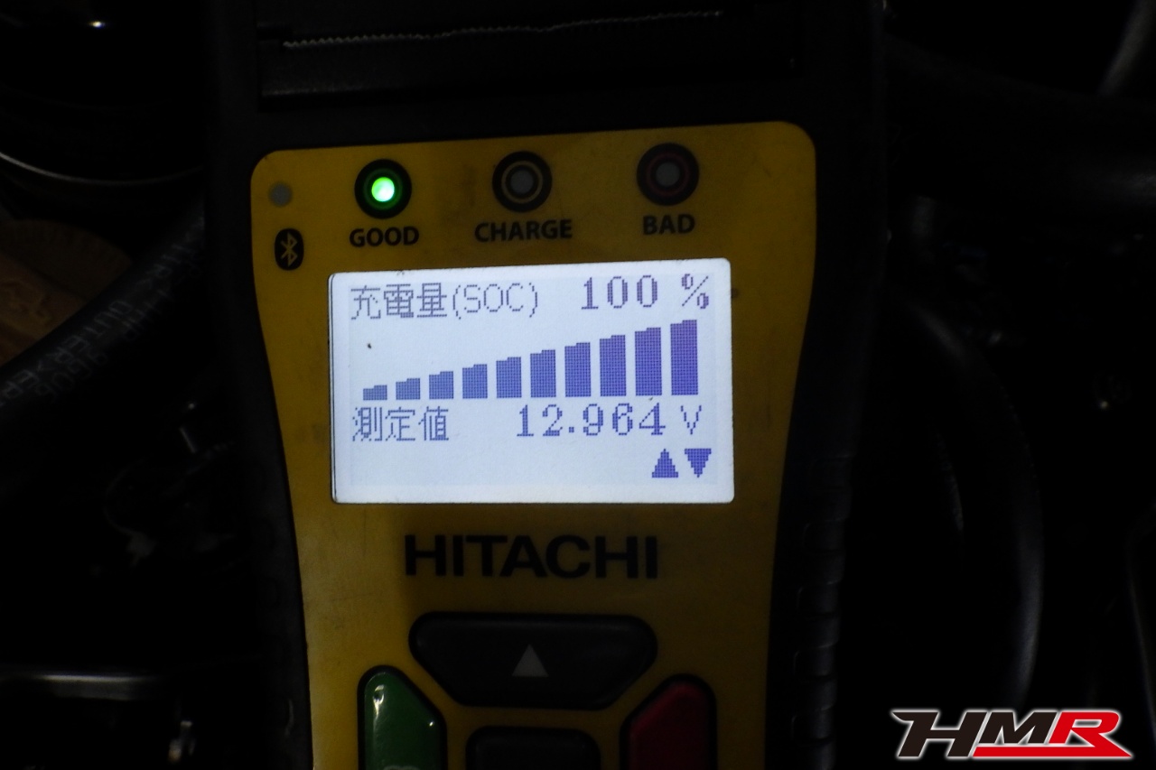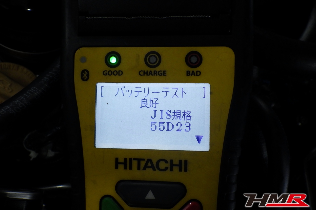 バッテリー、インテークホース、エアクリーナー、補機ベルト、プラグ、ブレーキ・クラッチマスターシリンダー、各部ゴム類の劣化、パッキン類・シール類からのオイル滲み・漏れ、ラジエターの劣化、冷却水漏れ、その他異音などをチェックしました。特に問題ありませんでした。