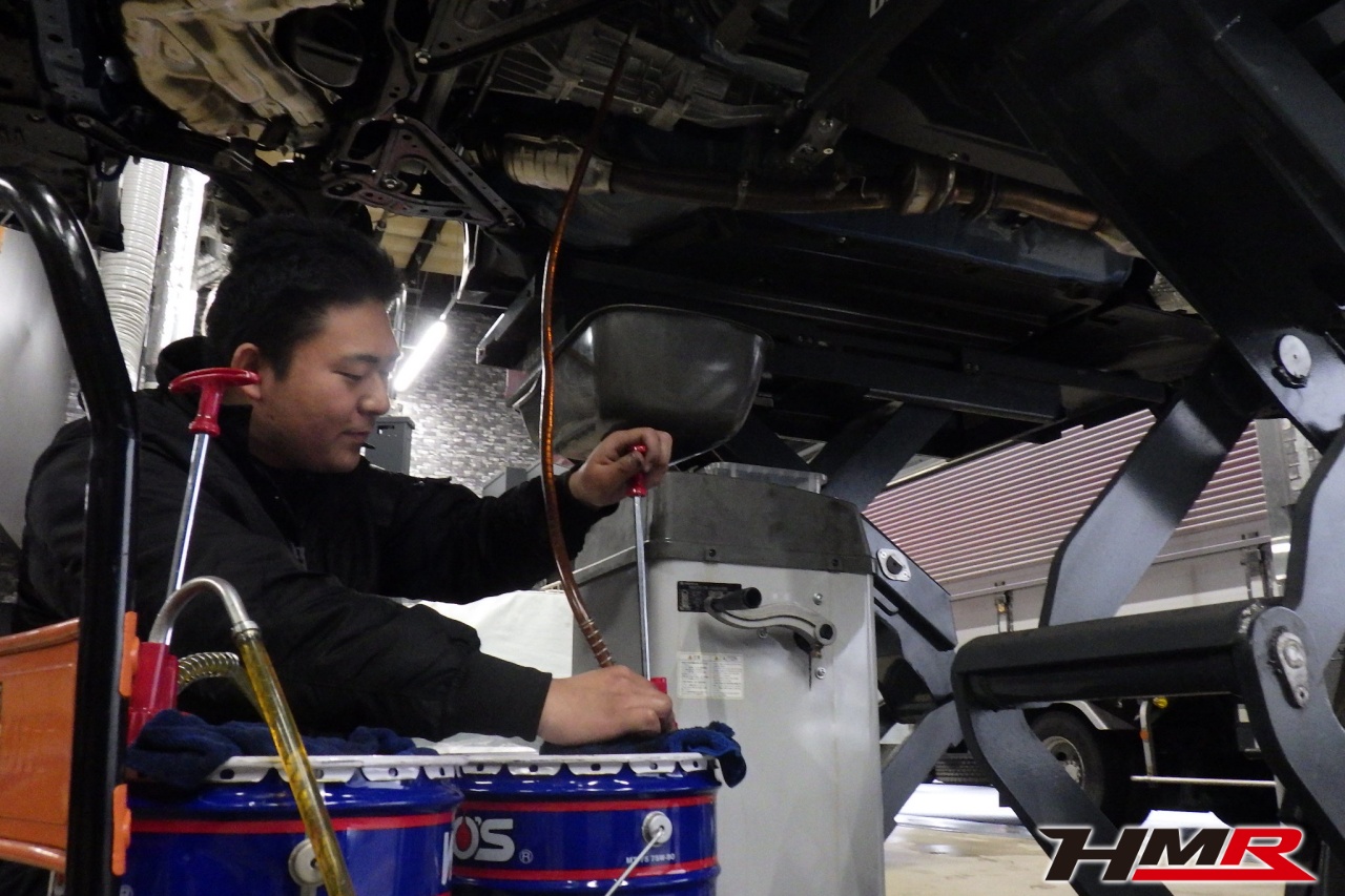 ハブベアリング・ボールジョイント、アーム・リンク類のガタ、ブッシュ・ブーツ類の劣化、エンジン・ミッション・デフからのオイル漏れと各マウント類、タイヤ溝の残量、空気圧の点検しました。特に問題ありませんでした。