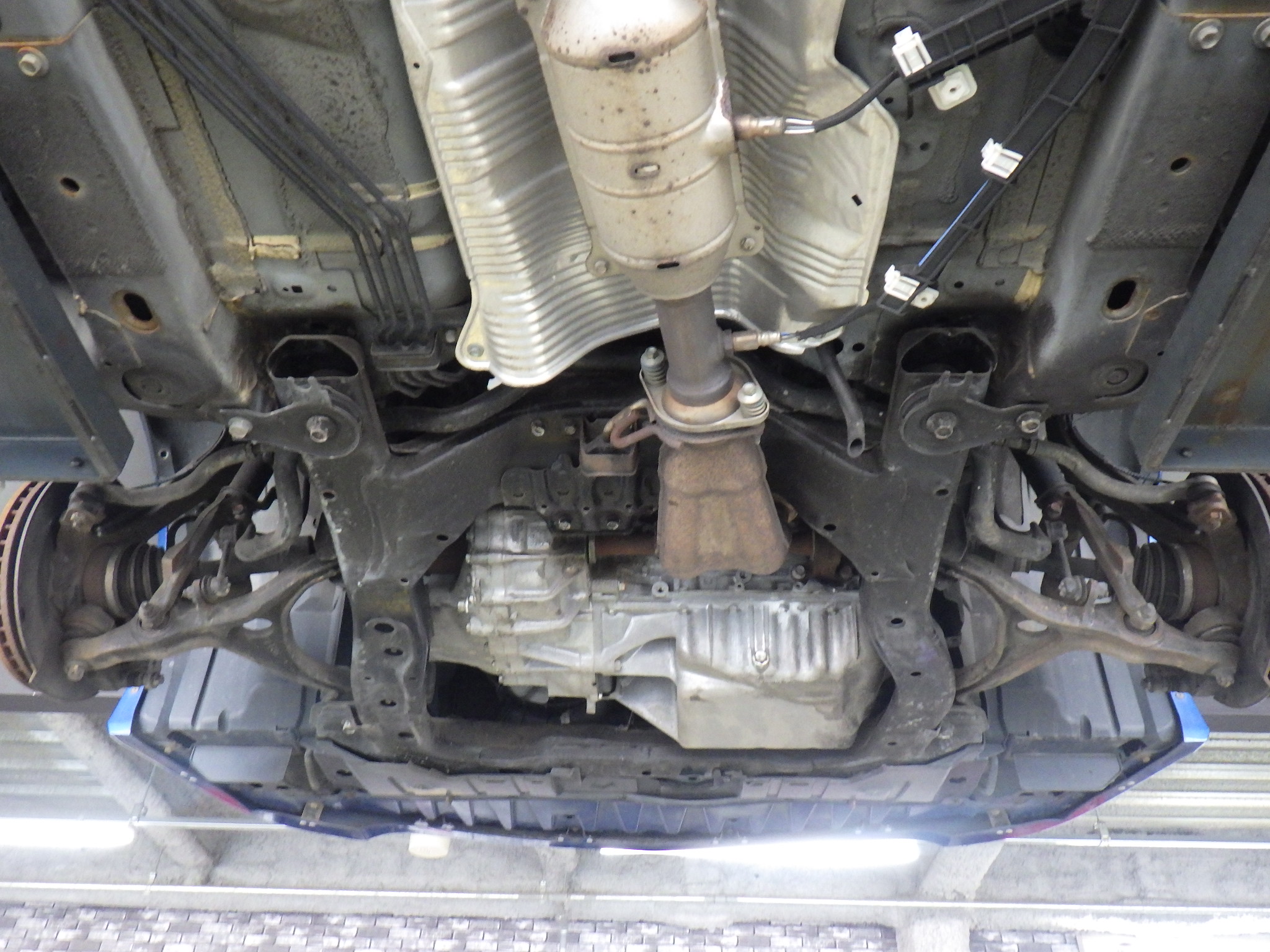 ハブベアリング・ボールジョイント、アーム・リンク類のガタ、ブッシュ・ブーツ類の劣化、エンジン・ミッション・デフからのオイル漏れと各マウント類、タイヤ溝の残量、空気圧の点検をしました。特に問題ありませんでした。タイヤはご用命いただきましたDZ102に4本新品交換しました。