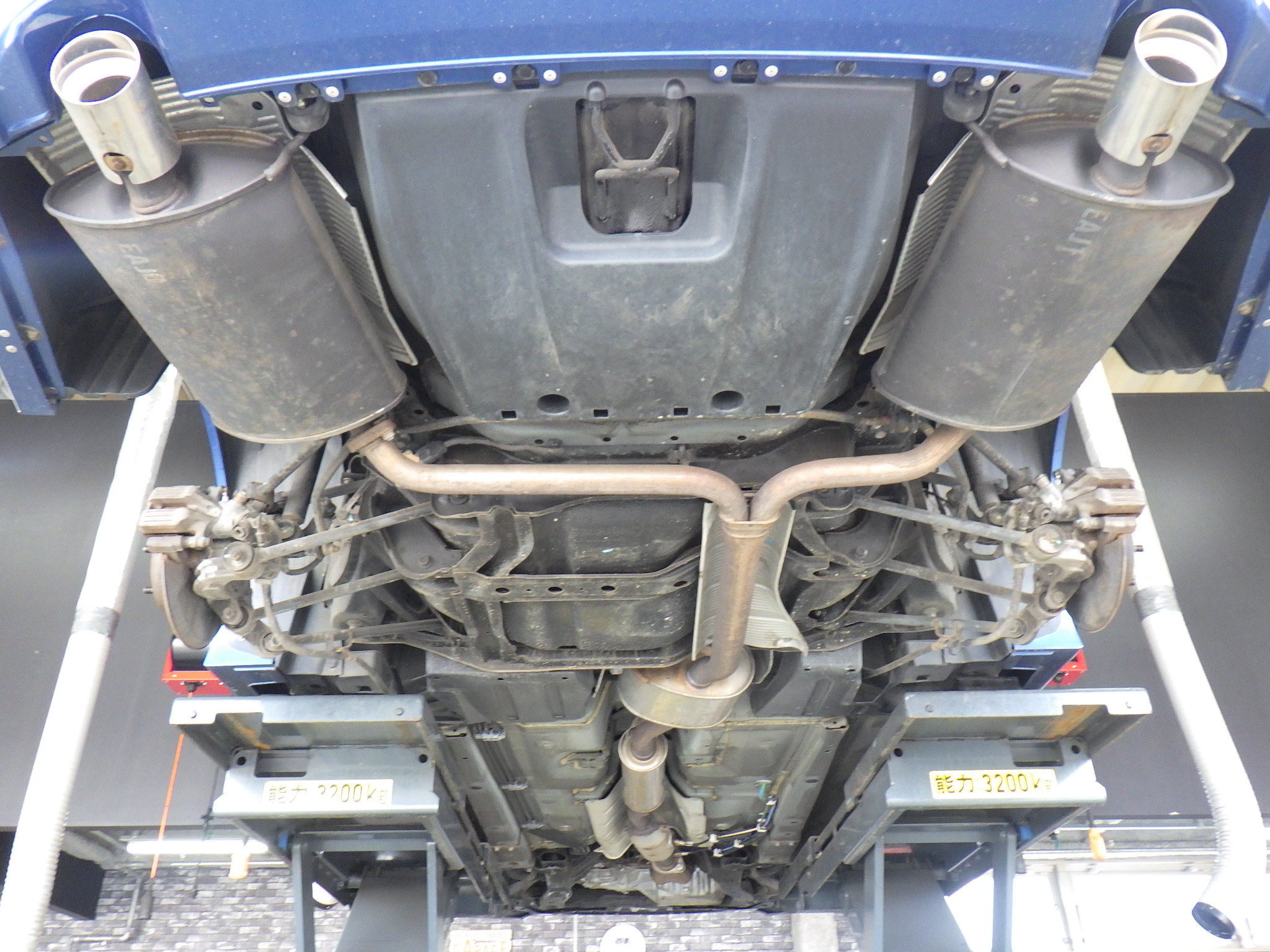 ハブベアリング・ボールジョイント、アーム・リンク類のガタ、ブッシュ・ブーツ類の劣化、エンジン・ミッション・デフからのオイル漏れと各マウント類、タイヤ溝の残量、空気圧の点検をしました。特に問題ありませんでした。タイヤはご用命いただきましたDZ102に4本新品交換しました。