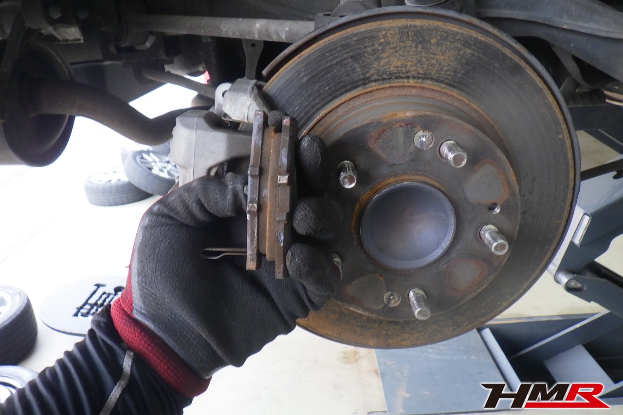 ブレーキキャリパーシール・キャリパーピストン、パッドの残量、ブレーキホースの劣化、ブレーキディスクローターの摩耗をチェックしました。特に問題ありませんでした。パッドの残量はおおよそフロント6.7mm・リア5.3mmでした。