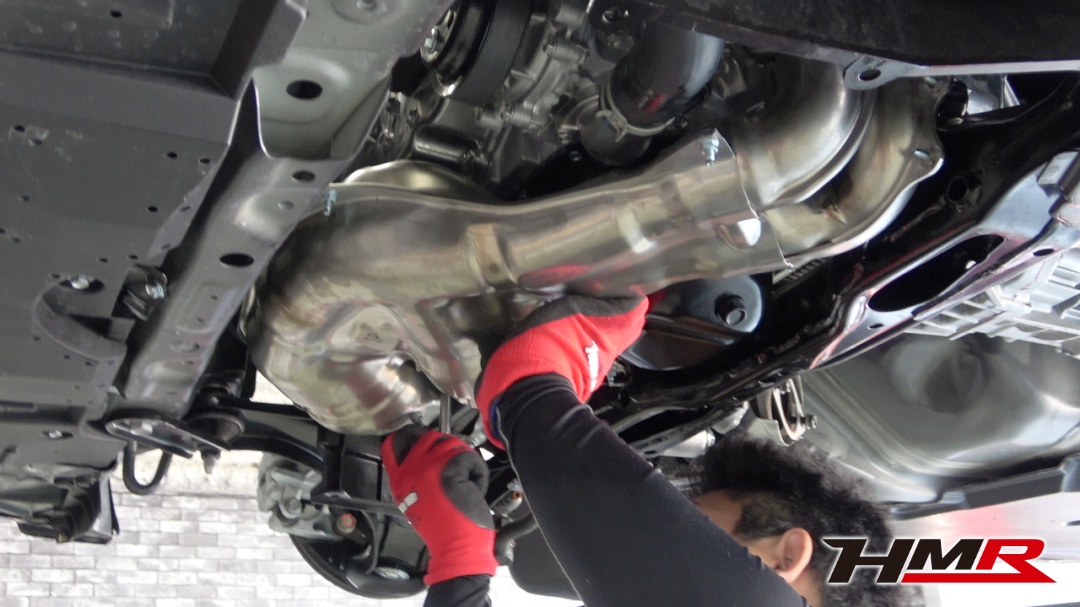 次にオイルパン交換の為エキマニを外していきます。