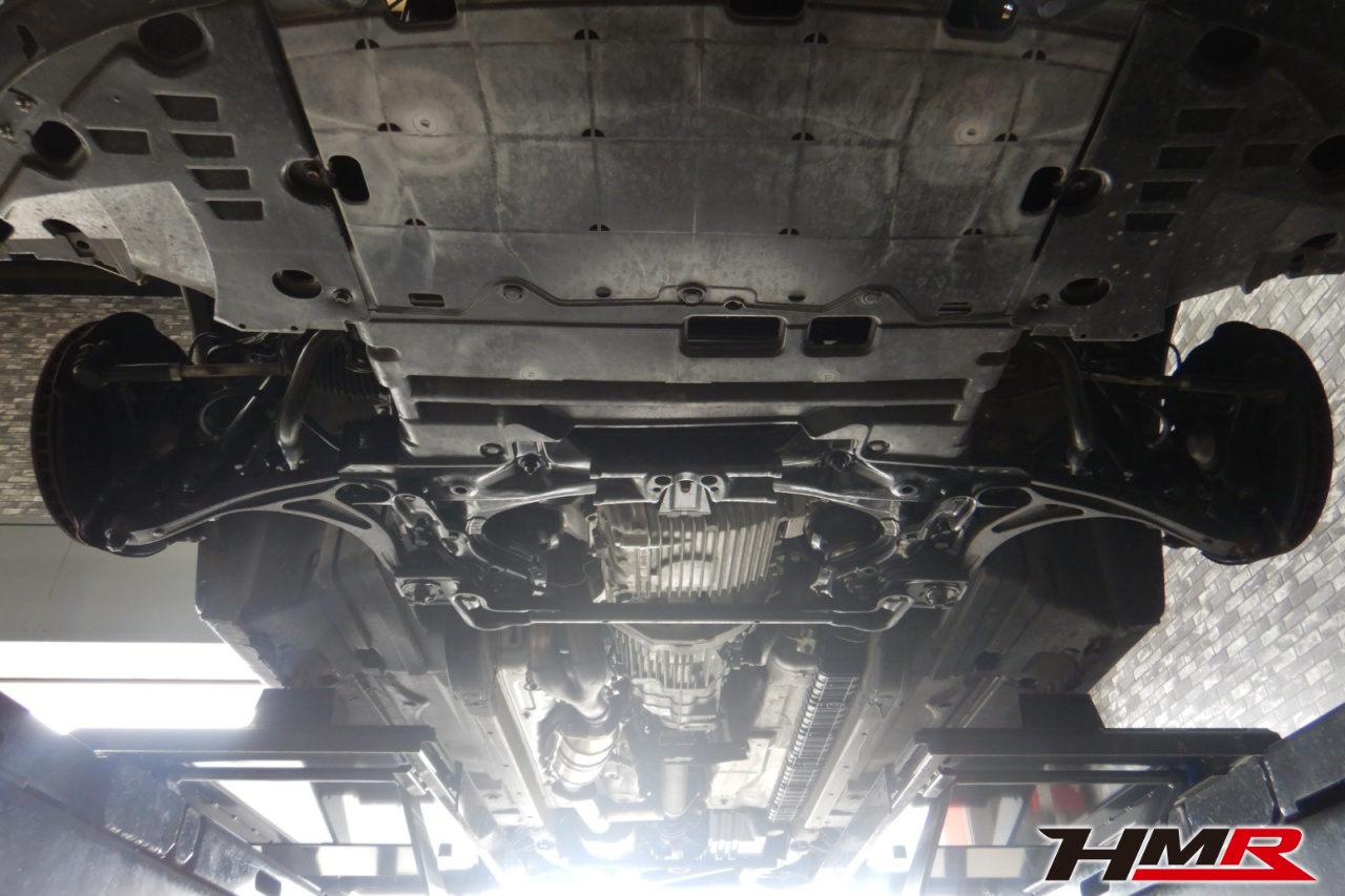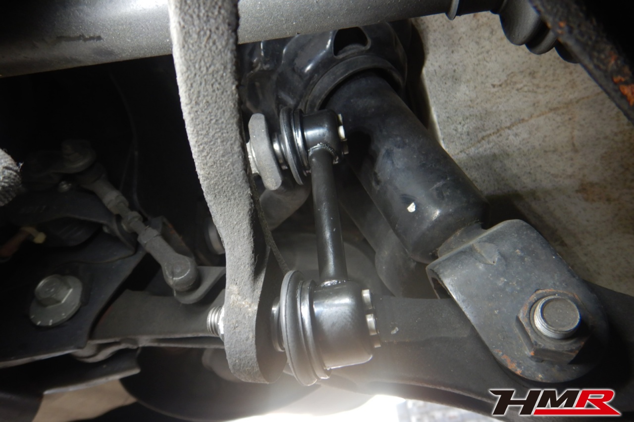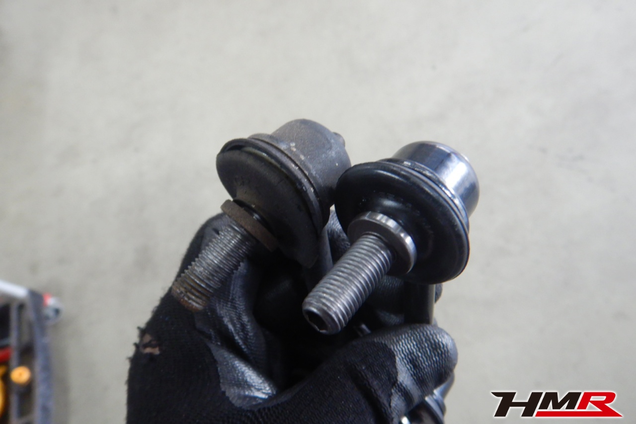 ハブベアリング・ボールジョイント、アーム・リンク類のガタ、ブッシュ・ブーツ類の劣化、エンジン・ミッション・デフからのオイル漏れと各マウント類、タイヤ溝の残量、空気圧の点検を行いました。左側スタビリンクブーツが切れていましたので交換しました。
