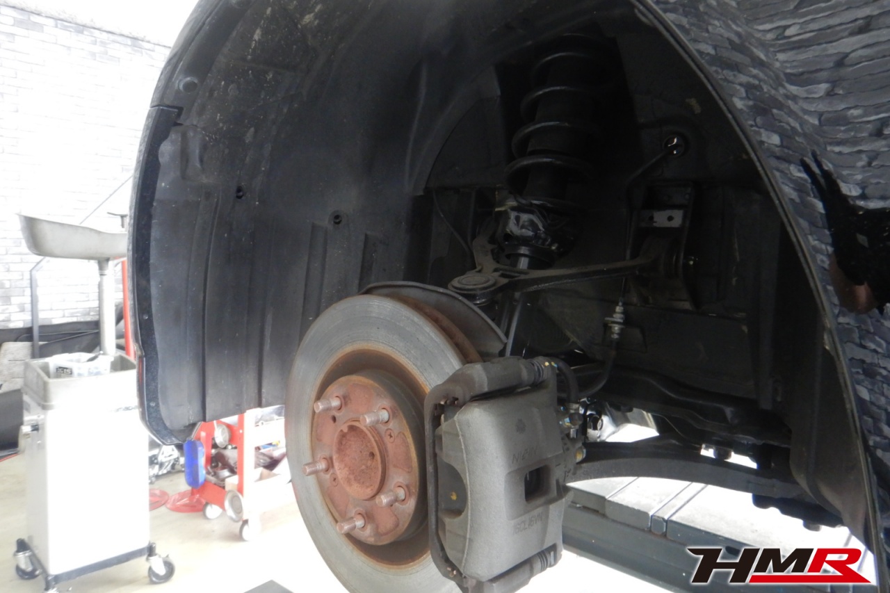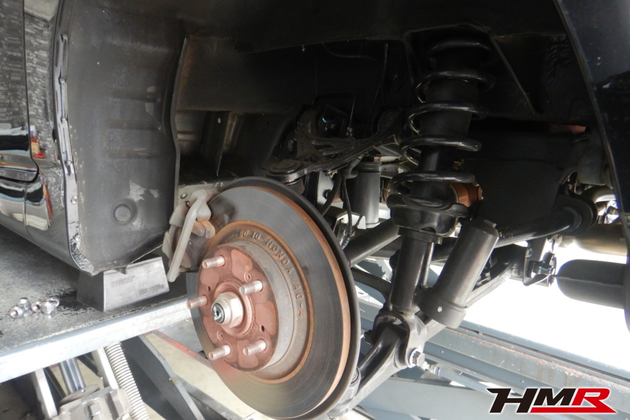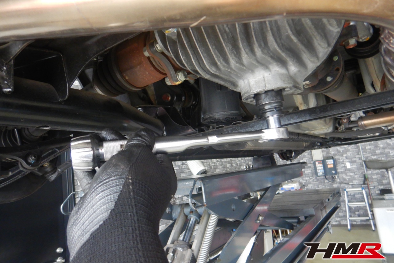 ハブベアリング・ボールジョイント、アーム・リンク類のガタ、ブッシュ・ブーツ類の劣化、エンジン・ミッション・デフからのオイル漏れと各マウント類、タイヤ溝の残量、空気圧の点検を行いました。左側スタビリンクブーツが切れていましたので交換しました。
