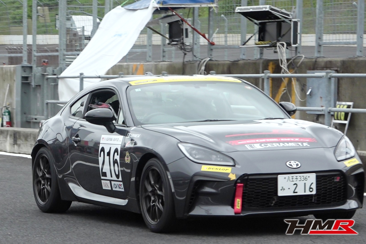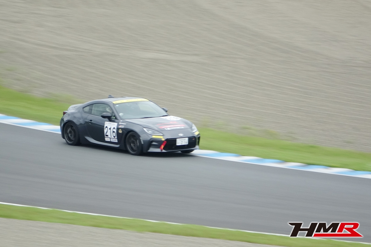 金曜日は午前と午後に2本の走行があり、それぞれGR86BRZクラブマンクラスの専有走行となります。参加台数が多いため、A組とB組に分かれての走行になり、我らが#216はA組枠。ちなみに、予選もこの枠になります。1本目の走行は水曜日のラストで使ったUSEDタイヤで走行しました。水曜日からはリヤの減衰を少し締めて走行。気温が水曜日と比べてそこまで高くなかったのもあり、タイムは2分19秒台に!車のバランスも良かったので1本目の途中で初のニュータイヤを装着しました。タイムは2分18秒510にタイムアップ。ただ、上位勢は16秒台もちらほらという状況。