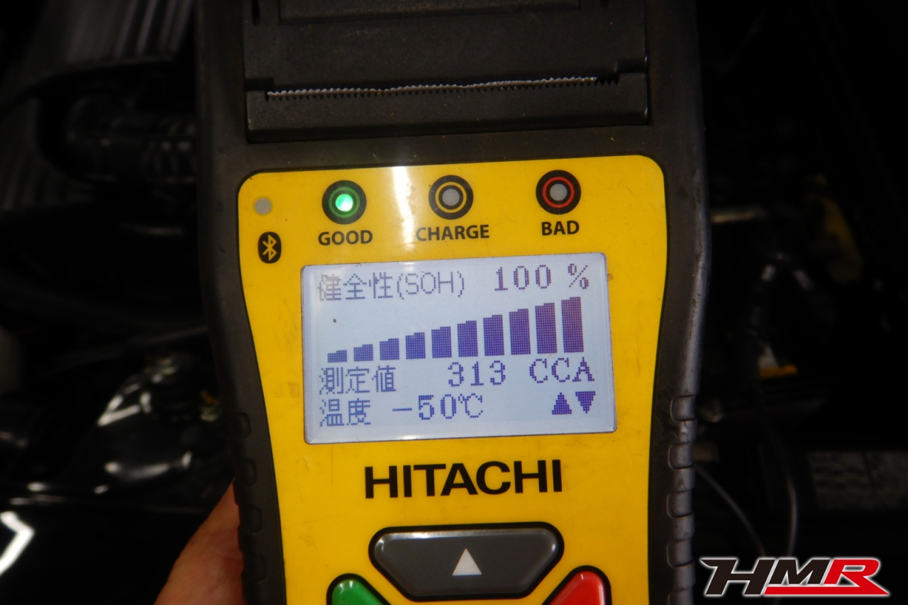 バッテリー、インテークホース、エアクリーナー、補機ベルト、プラグ、ブレーキ・クラッチマスターシリンダー、各部ゴム類の劣化、パッキン類・シール類からのオイル滲み・漏れ、ラジエターの劣化、冷却水漏れ、その他異音などをチェックしました。特に問題ありませんでした。