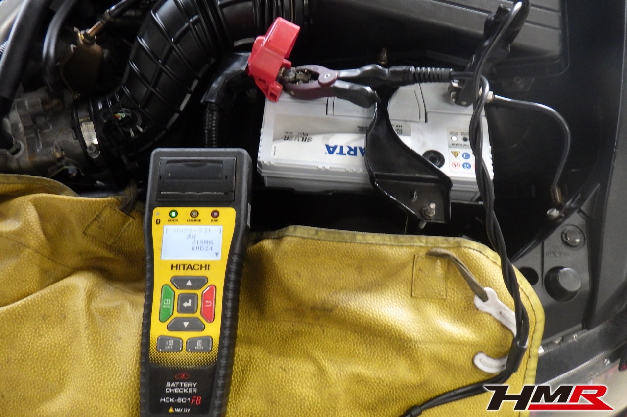 バッテリー、インテークホース、エアクリーナー、補機ベルト、スパークプラグ、ブレーキ&クラッチマスターシリンダー、各部ゴム類の劣化、パッキン類・シール類からのオイル滲み・漏れ、ラジエターの劣化、冷却水漏れ、その他異音などをチェックしました。特に問題ありませんでした。