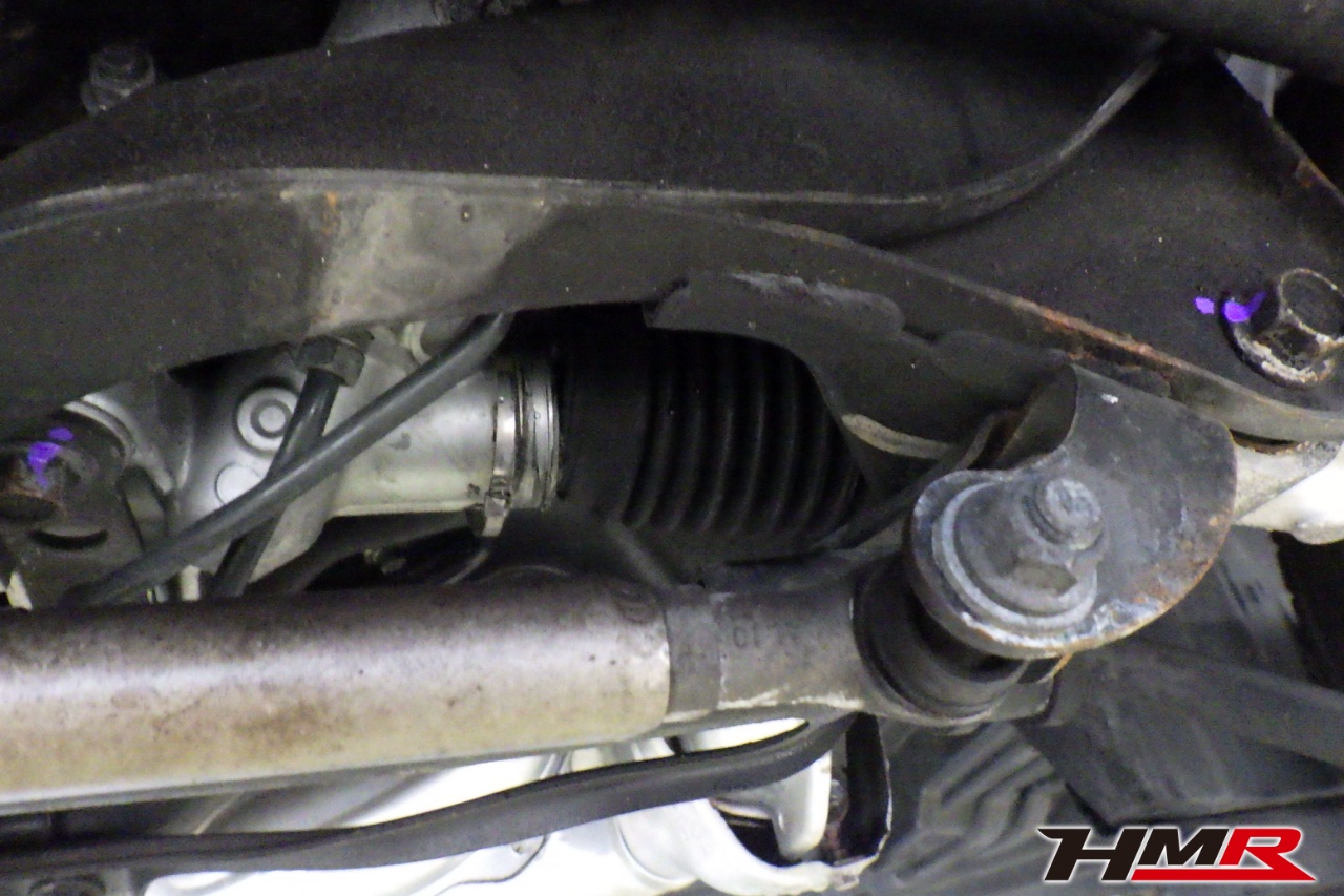 ハブベアリング・ボールジョイント、アーム・リンク類のガタ、ブッシュ・ブーツ類の劣化、エンジン・ミッション・デフからのオイル漏れと各マウント類、タイヤ溝の残量、空気圧の点検しました。左側ラックブーツが切れていましたので交換しました。